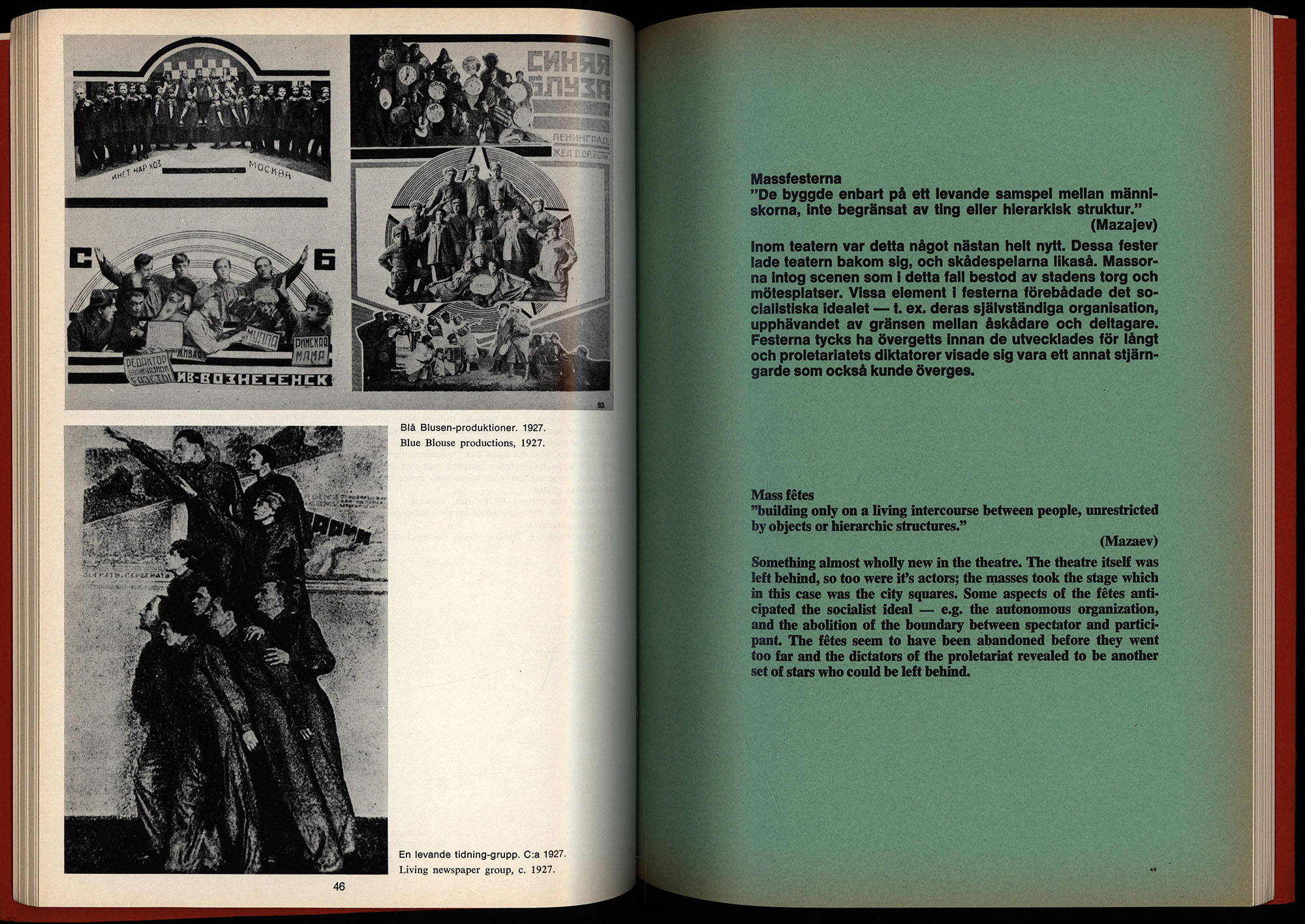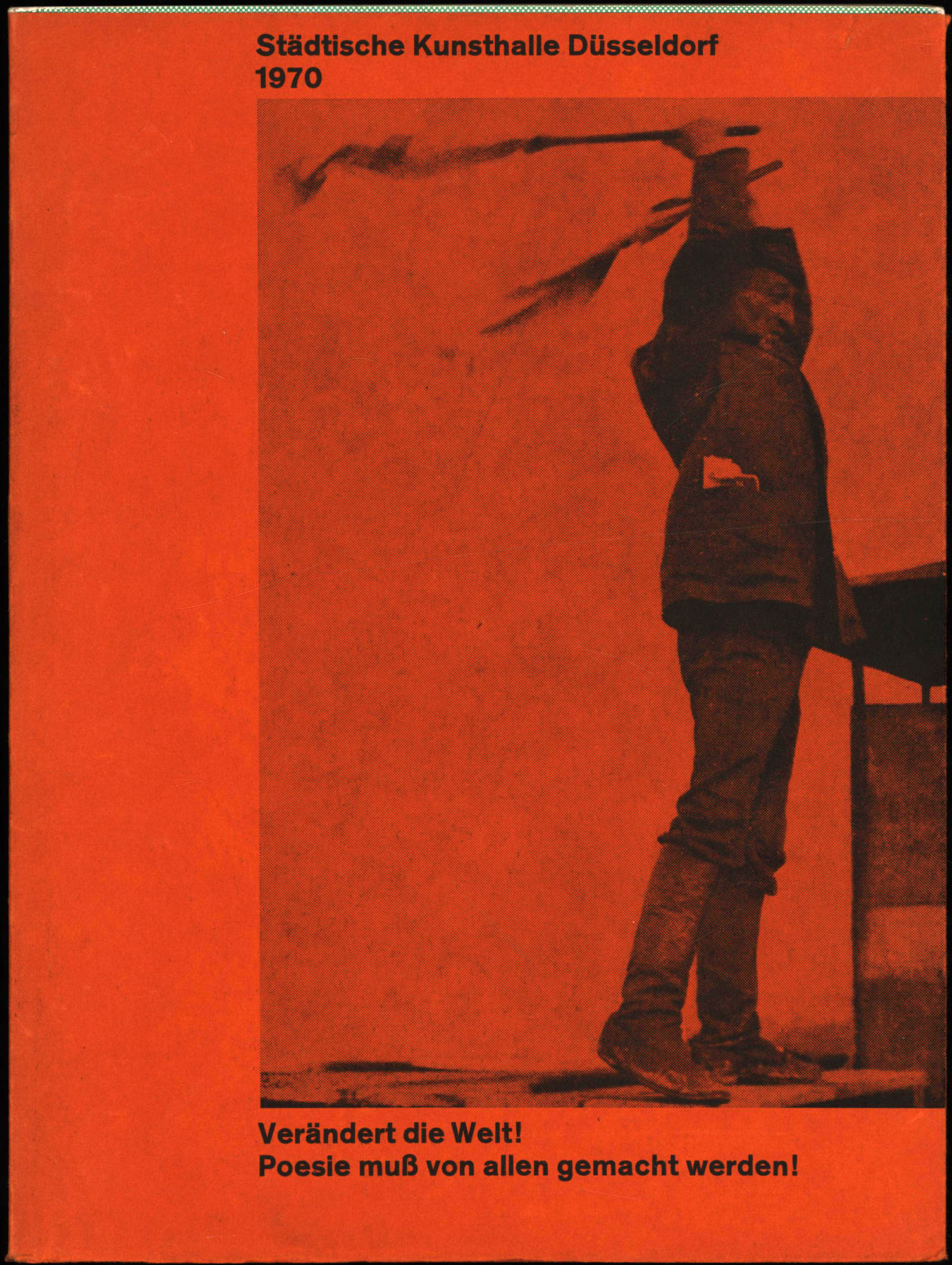 1. Auflage. Zweisprachige Ausgabe in Schwedisch und Englisch mit Beiheft in Deutsch. Mit zahlreichen Fotoabbildungen in Schwarz-Weiß. Publikation anlässlich der Ausstellung im Moderna Museet Stockholm vom 15. November bis 21. Dezember 1969. Mit dem zugehörigen deutschsprachigen Beiheft „Verändert die Welt! Poesie muß von allen gemacht werden!“ (22 Seiten stark) zur Ausstellung in der Städtischen Kunsthalle Düsseldorf vom 6. bis 25. Oktober 1970. Umschlag minimal berieben, ansonsten sehr gutes Exemplar.