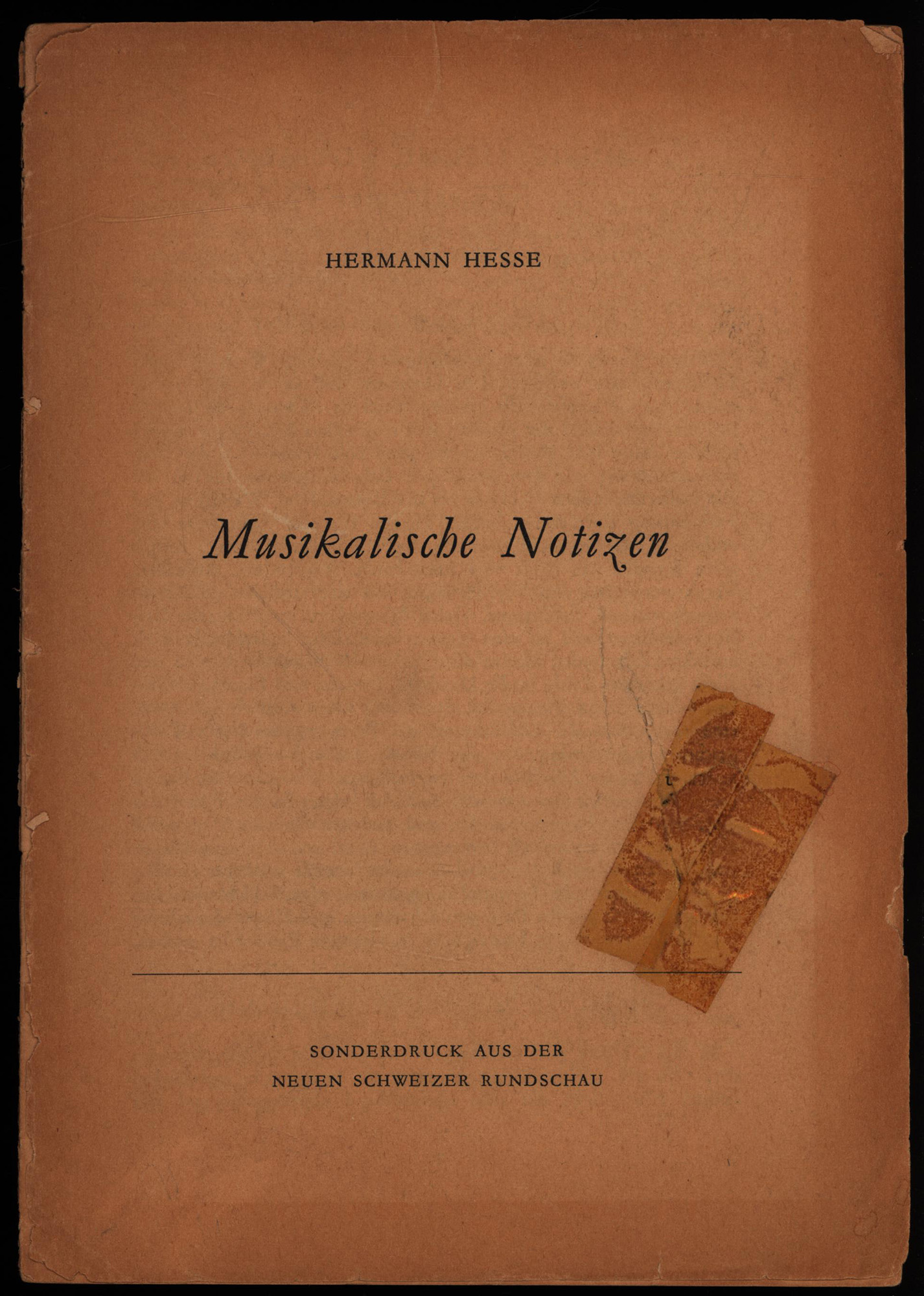 Hesse, Hermann: Musikalische Notizen. [Erstausgabe, signiertes Exemplar.] [Zürich], [Conzett & Huber], [1948]. 8°. 22,5 x 15,8 cm. 20 Seiten. Klammergeheftete Original-Broschur.