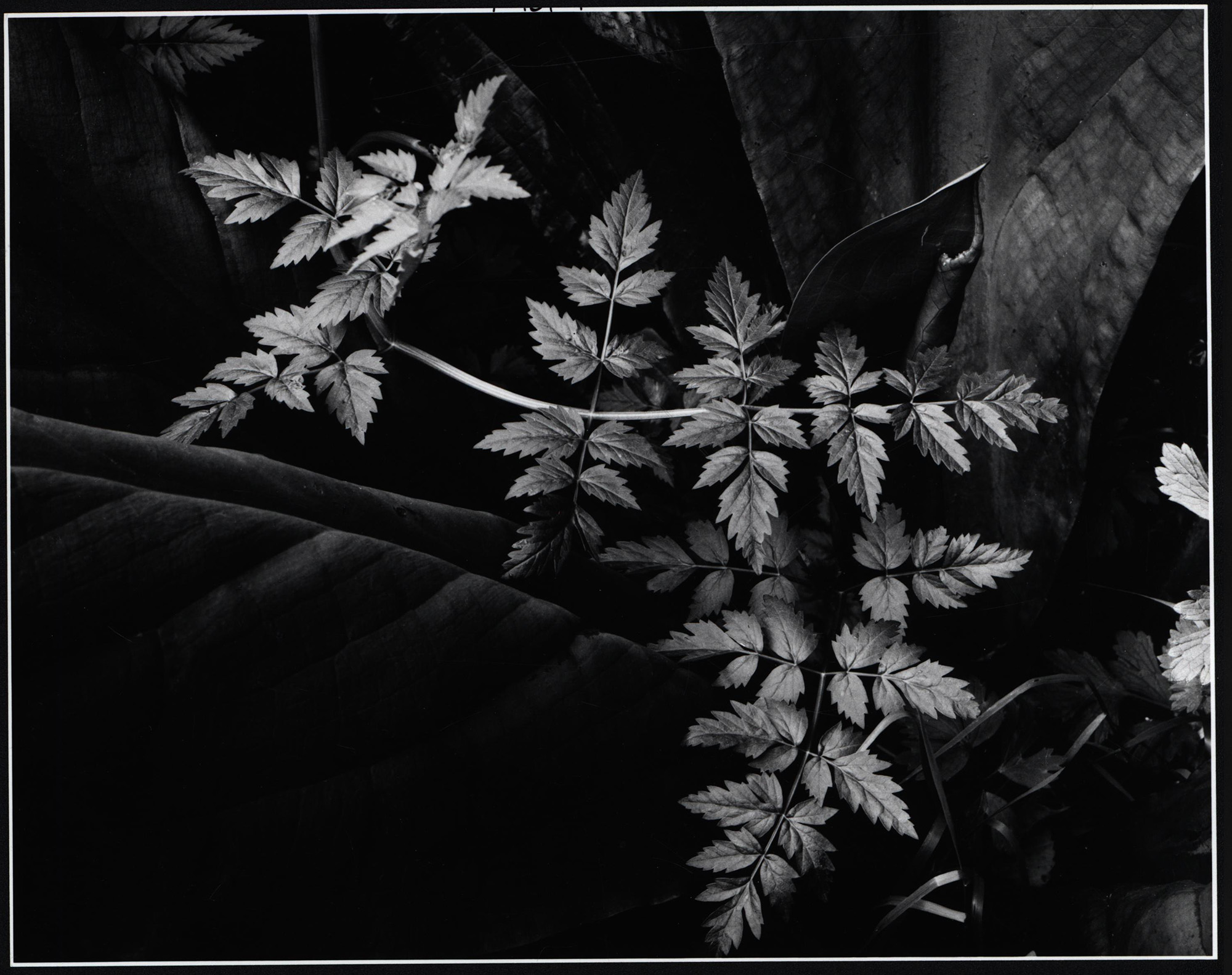 Cunningham, Imogen: Leaves. 1948. [Original-Fotografie in Schwarz-Weiß / original photograph]. (Imogen Cunningham, geb. 12.04.1883 in Portland/Oregon, gest. 24.06.1976 in San Francisco, US-amerikanische Fotografin, die zu den „Klassikern“ der modernen Fotografie des 20. Jahrhunderts gezählt wird und Gründungsmitglied der Gruppe f/64. 1967 wurde Cunningham in die American Academy of Arts and Sciences gewählt).