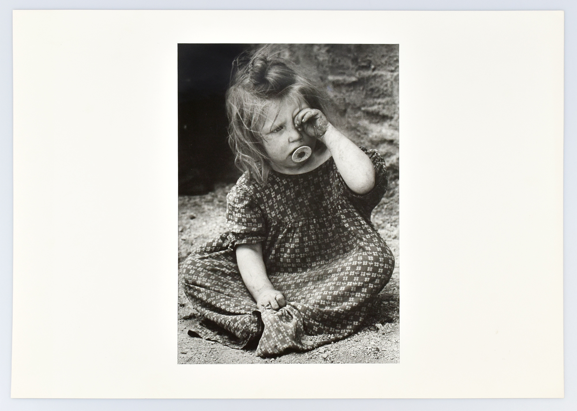 Moegle, Willi: Kleinkind. 1953. [Signierte Original-Fotografie mit Widmung / signed original photograph with dedication.] (Willi Moegle, geb. 17.08.1897 in Esslingen am Neckar, gest. 06.07.1989 in Leinfelden-Echterdingen, deutscher Sach- und Werbefotograf und gilt als ein führender Vertreter der Sachaufnahme der Nachkriegszeit).