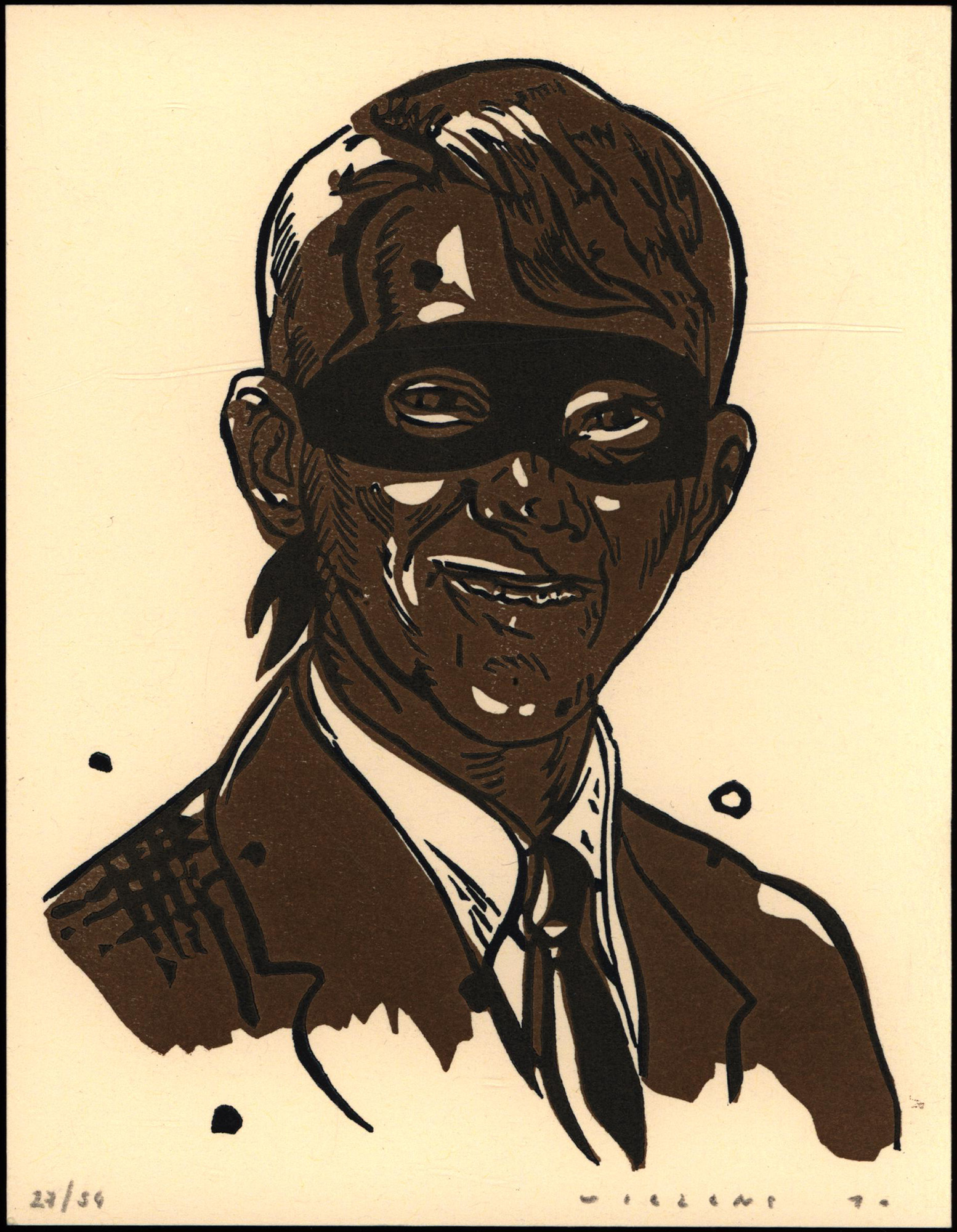 Nummer 27 von 54 nummerierten Original-Lithografien von Steve Viezens in Braun und Schwarz, am unteren Blattrand mit Bleistift nummeriert, signiert und datiert (’10). Blattgröße: 20,0 x 15,5 cm. Sehr guter Zustand.