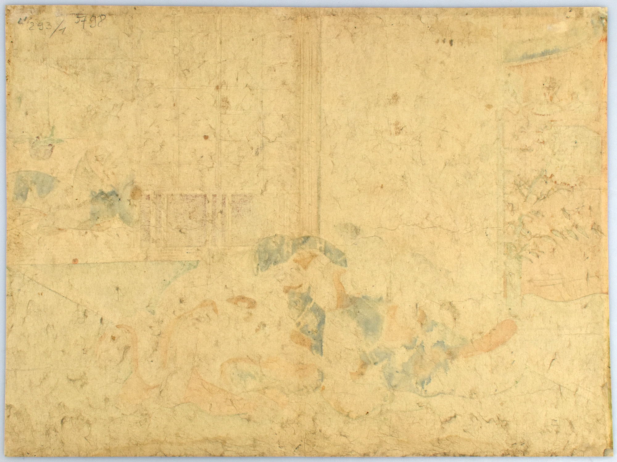 Original-Farbholzschnitt mit erotischem Motiv von Suzuki Harunobu auf Japanpapier, aus: Japanese Erotic Fantasies, Blatt 16. Blattgröße: 20,6 x 27,6 cm (Chuban). Blattrückseite mit kleiner Nummerierung mit Bleistift und winzigen Klebespuren an den Blattkanten. Insgesamt sehr guter Zustand.