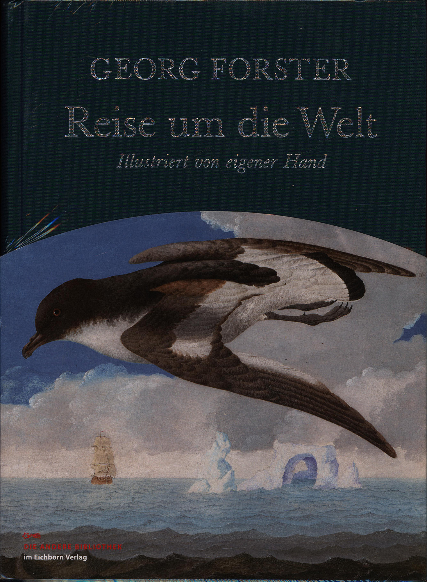 Forster, Georg: Reise um die Welt. Illustriert von eigener Hand. Mit einem biographischen Essay von Klaus Harpprecht und einem Nachwort von Frank Vorpahl. Frankfurt am Main, Eichborn Verlag, 2007. 4°. 31 x 23 cm. 645 Seiten. Illustrierter Original-Leinenband mit halbem Original-Pappschuber. (Die Andere Bibliothek).