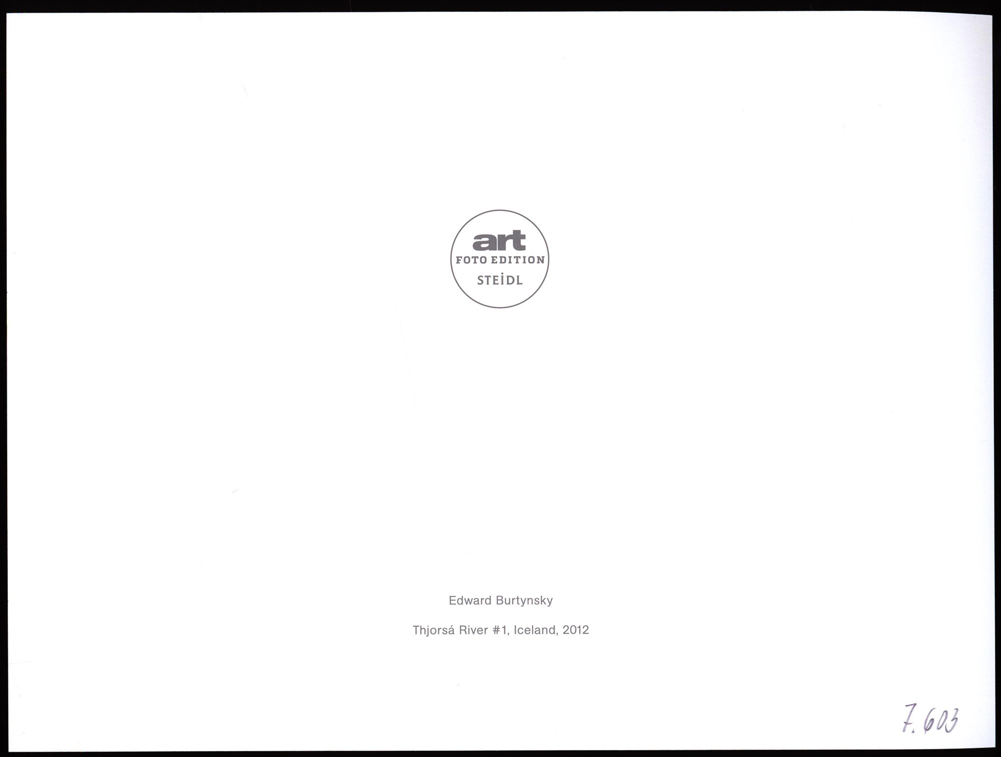 ″Thjorsá River #1, Iceland“ by Edward Burtynsky (2012), here published by Steidl art Foto Edition as colour offset print. Sheet size: 19.0 x 25.3 cm, typographic print on the backside. With the original glassine envelope. Provenance: From the estate of the art collector and author Ralf Seilheimer, with his inventory number on the backside and with enclosed index form from his collection. Fine condition.
