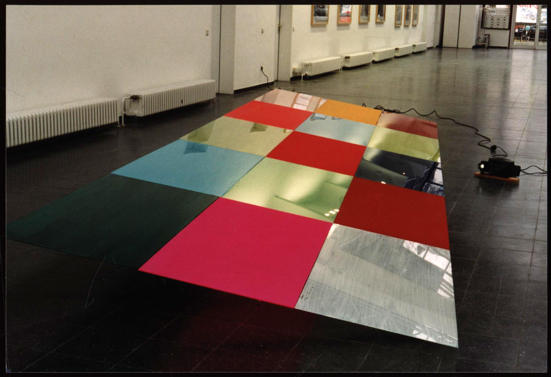 Schwer, Paul: Ausstellungsansicht. 2001. [Autogramm, signierte Fotografie]. (Paul Schwer, geb. 1951 in Schonach im Schwarzwald, deutscher Installationskünstler. 1981 bis 1988 an der Kunstakademie Düsseldorf Meisterschüler bei Erwin Heerich).