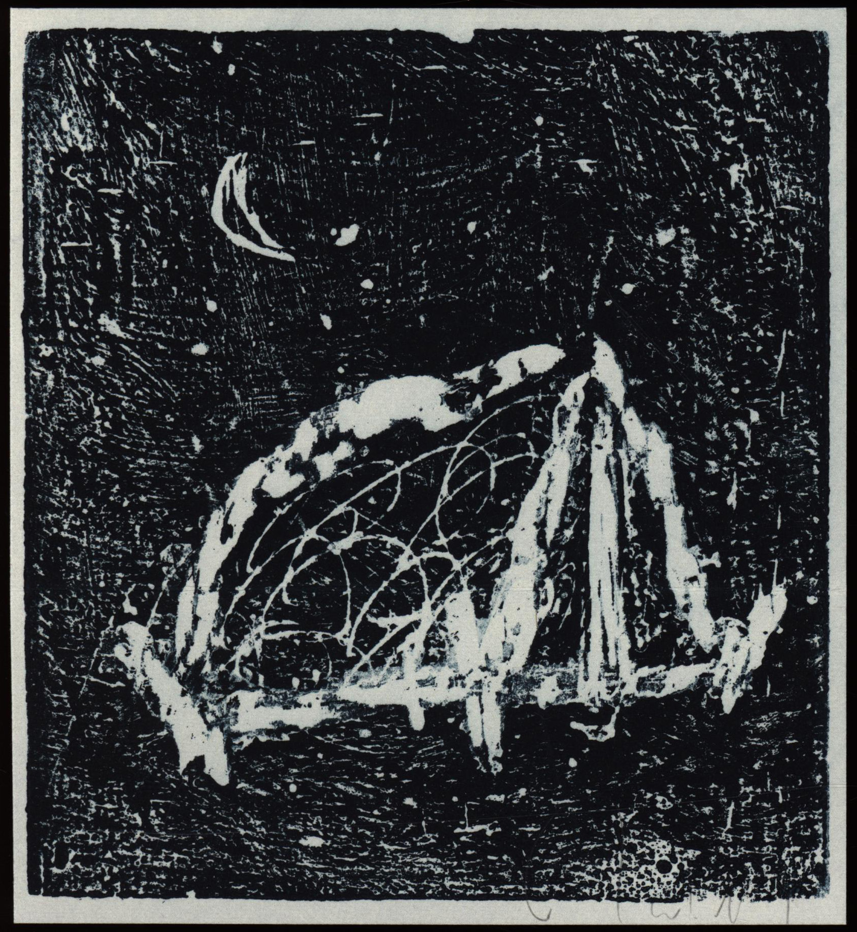 Original-Holzschnitt von Ulrich Tarlatt, am unteren Blattrand mit Bleistift signiert, zusätzlich rückseitig mit signierten handschriftlichen Neujahrswünschen für 2015. Provenienz: Aus dem Nachlass des Kunstsammlers und Autors Ralf Seilheimer, mit seiner Inventarnummer auf der Rückseite und beiliegendem Karteiblatt seiner Sammlung. Blattgröße: 15,4 x 14,0 cm. Sehr guter Zustand.
