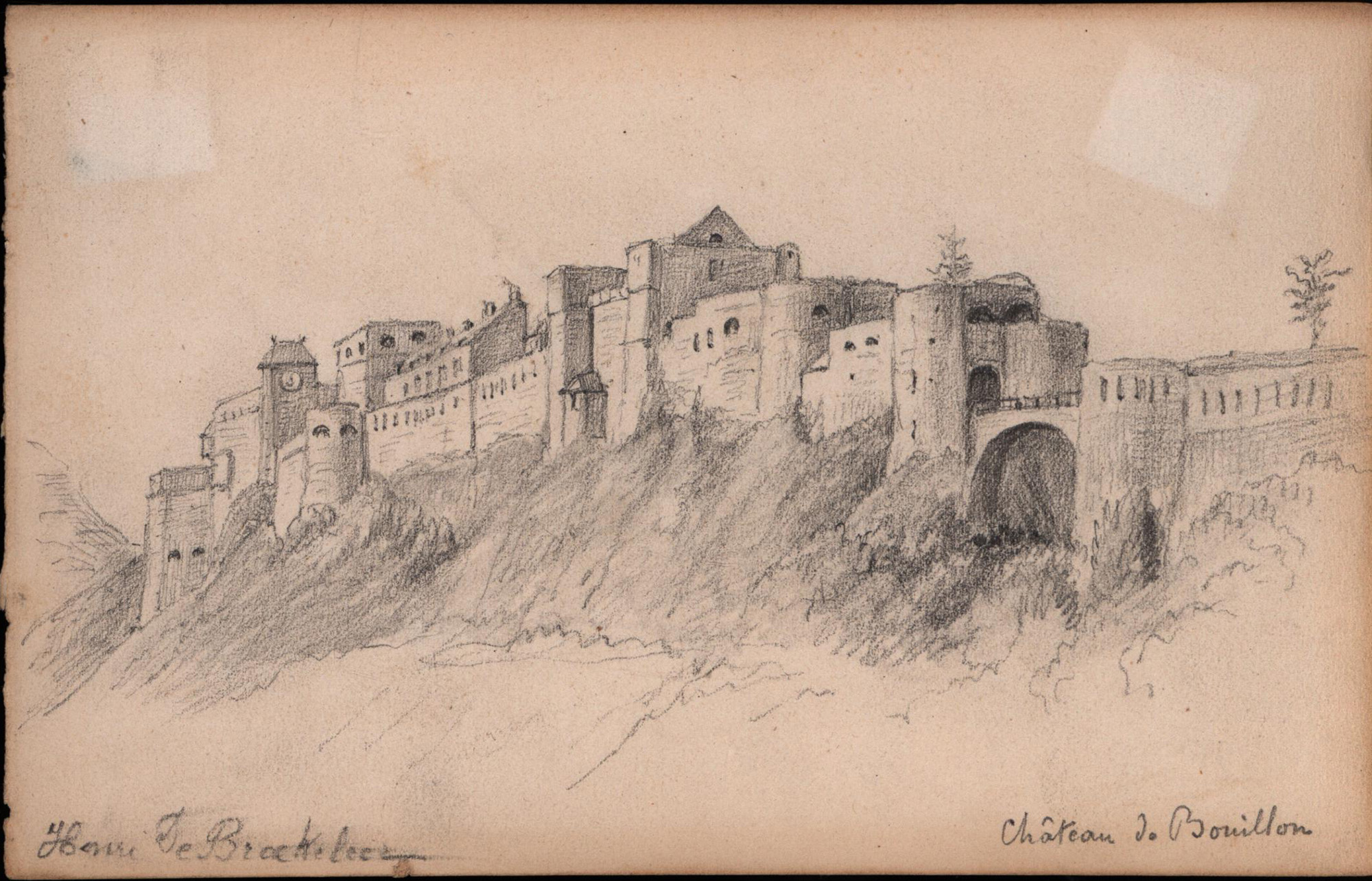 Braekeleer, Henri de: Chateau de Bouillon. [Signierte Original-Zeichnung]. Henri de Braekeleer, geb. 11.06.1840 in Antwerpen, gest. 20.07.1888 ebenda, flämischer Maler.