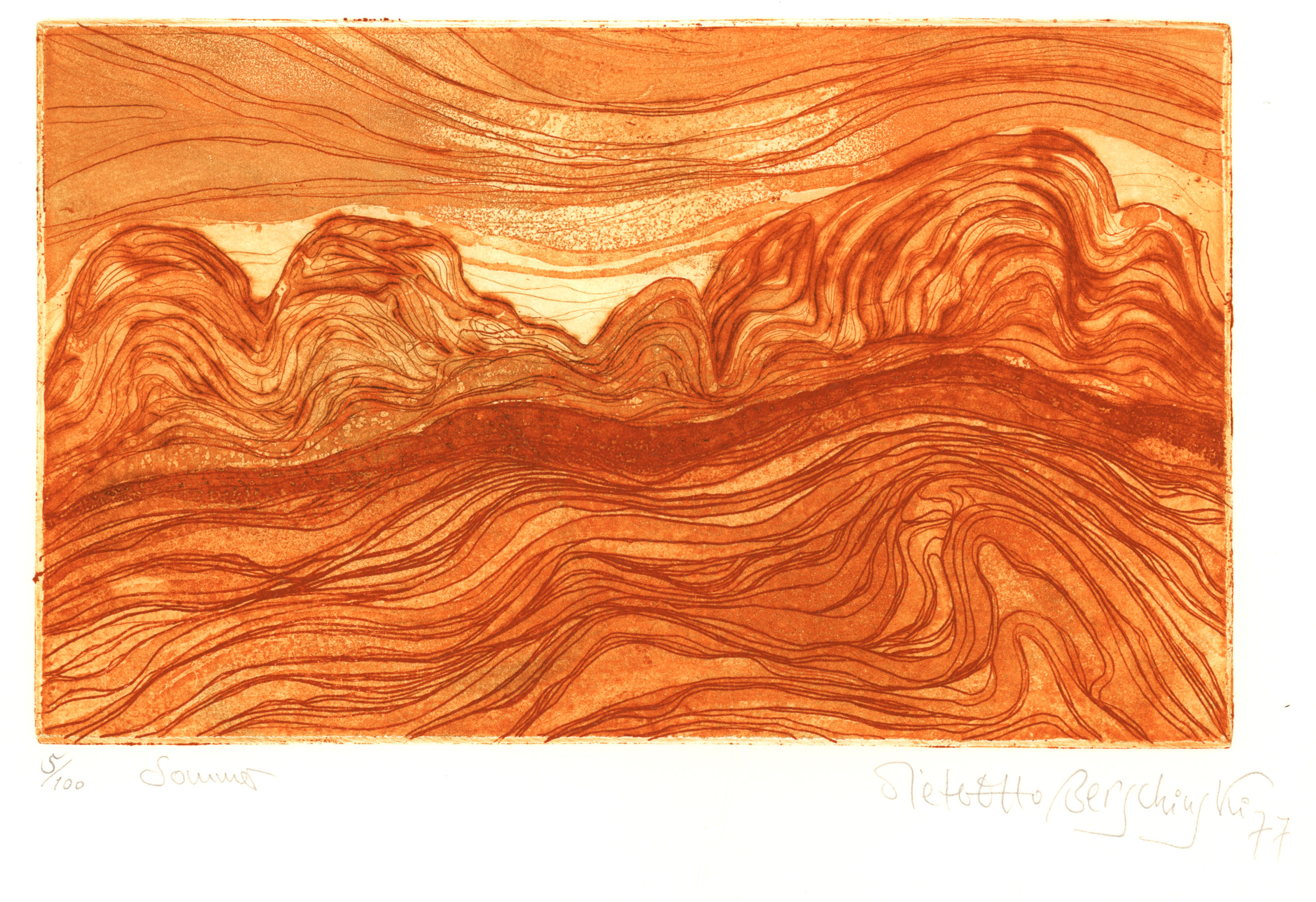 Nummer 5 von 100 mit Bleistift nummerierten, beschrifteten, datierten (77) und von Dieter Otto Berschinski signierten Original-Farbradierungen auf Büttenpapier. Maße Blatt: 26,8 x 37,8 cm. Maße Abbildung: 16,0 x 27,0 cm. Sehr gutes Exemplar.
