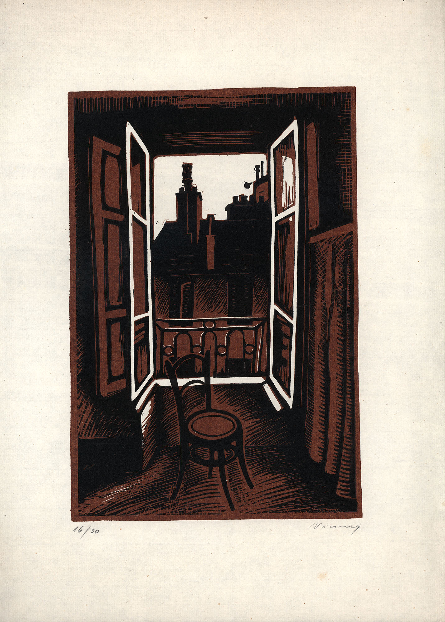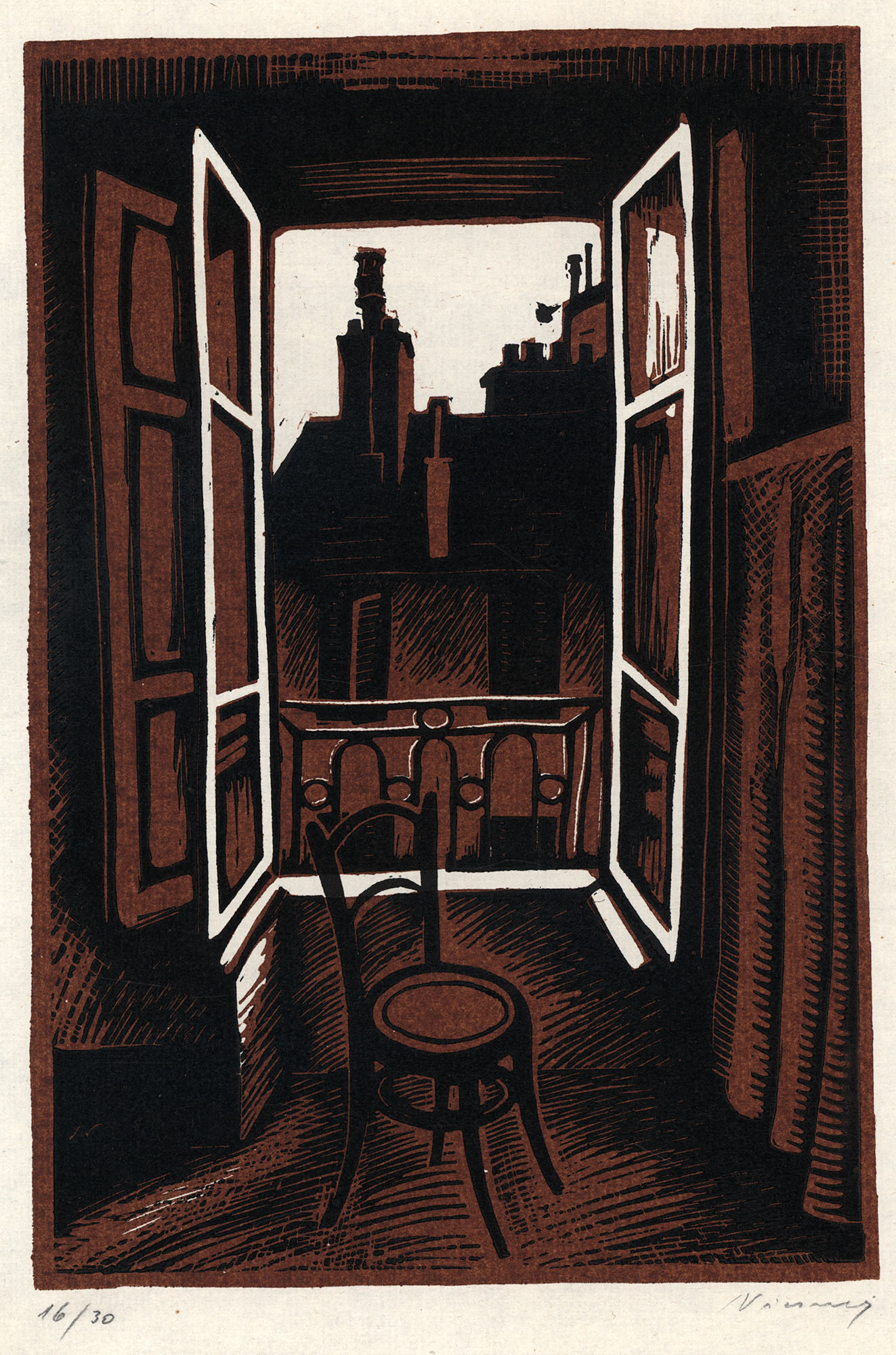 Niesner, Zimmerausblick, Paris. [Signierter Original-Farbholzschnitt].