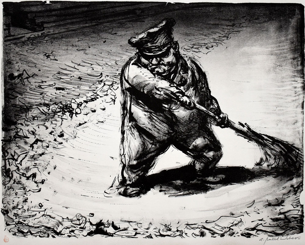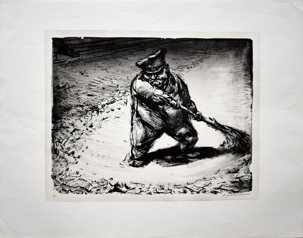 Weber, A. Paul: Straßenfeger. 24.12.63. [Signierte Original-Lithografie / signed original lithograph]. A. Paul Weber (Andreas Paul Weber), geboren am 1. November 1893 in Arnstadt, gestorben am 9. November 1980 in Schretstaken bei Mölln, Schleswig-Holstein.