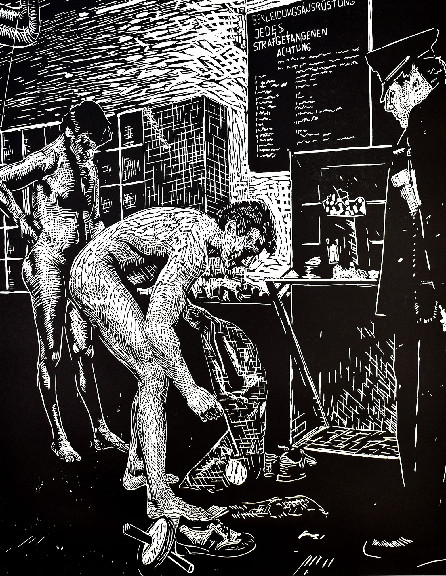 Each graphic signed in lead by Thomas Kilpper on the reverse. Series includes the following sheets: 1. MfS wiretapping methods, 1980s. Dimensions sheet/illustration: 55.4 x 89.6 cm. 2. Fingerprint of the Minister of the Interior, Wolfgang Schäuble, 2007. Dimensions sheet/image: 77.6 x 67.6 cm. 3. Storage of smell samples by the MfS, 1980s. Dimensions sheet/illustration: 48.2 x 89.2 cm. 4. Horst Herold (*1923), BKA President (1971–1981), inventor and driving force behind the use of dragnets. Dimensions sheet/illustration: 59.1 x 59.1 cm. 5. Control of newcomer in GDR prison, 1980s. Dimensions sheet/illustration: 88.9 x 69.2 cm. 6. Ulrike Meinhof (*1934 †1976), visiting the Breitenau girls’ educational home, Guxhagen near Kassel, 1969. Sheet/image dimensions: 77.5 x 69.5 cm.