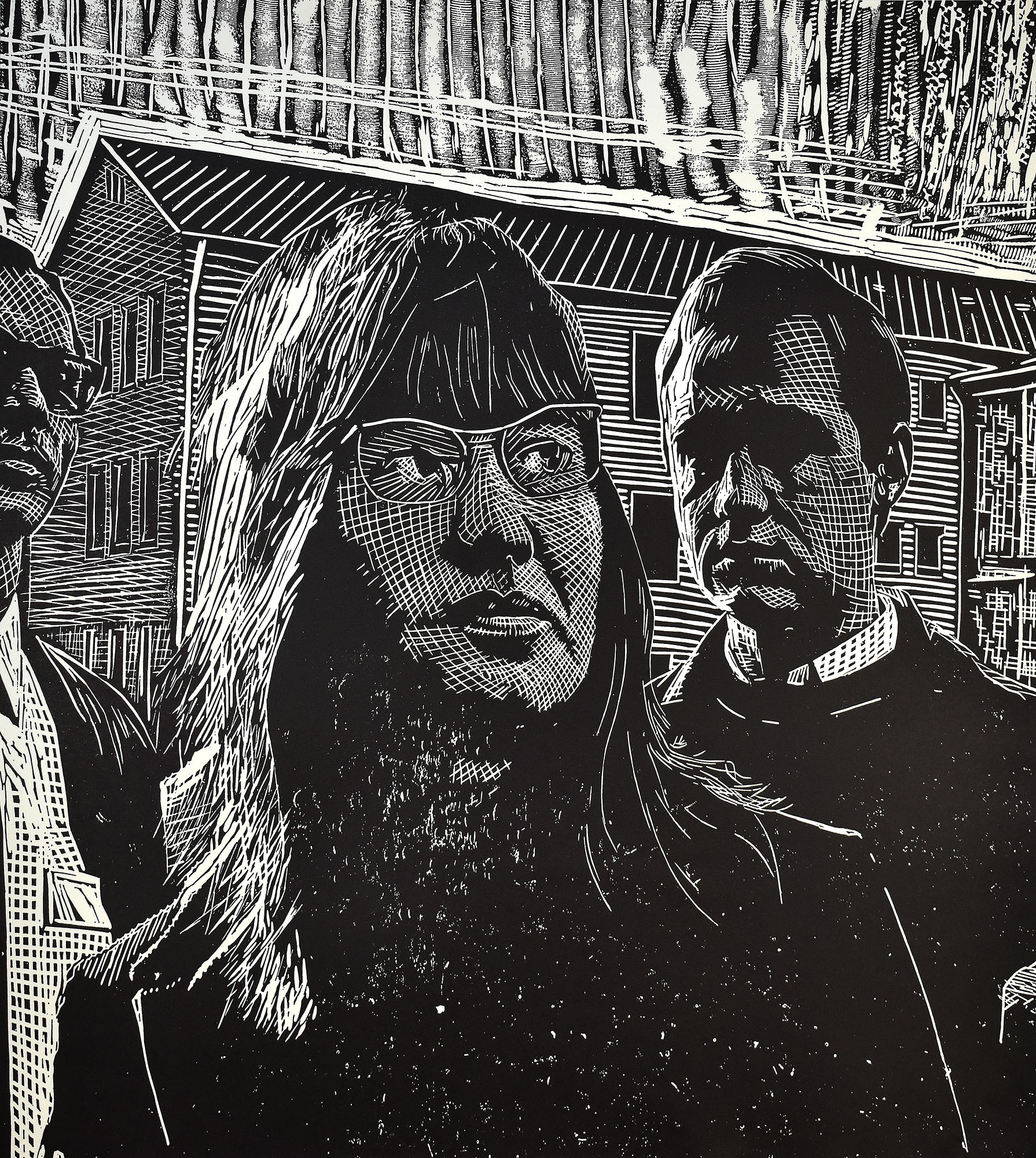 Kilpper, Thomas: A. [19]92. [Signierter Original-Holzdruck / signed original woodcut]. Thomas Kilpper, geboren 1956 in Stuttgart. Deutscher Installationskünstler, Zeichner und Holzschneider, bekannt für seine kritischen gesellschaftlichen und politischen Interventionen. Studium der Malerei und Bildhauerei an den Kunstakademien in Nürnberg und Düsseldorf, dort bei Alfonso Hüppi, an der Städelschule in Frankfurt am Main 1998 Meisterschüler von Georg Herold.
