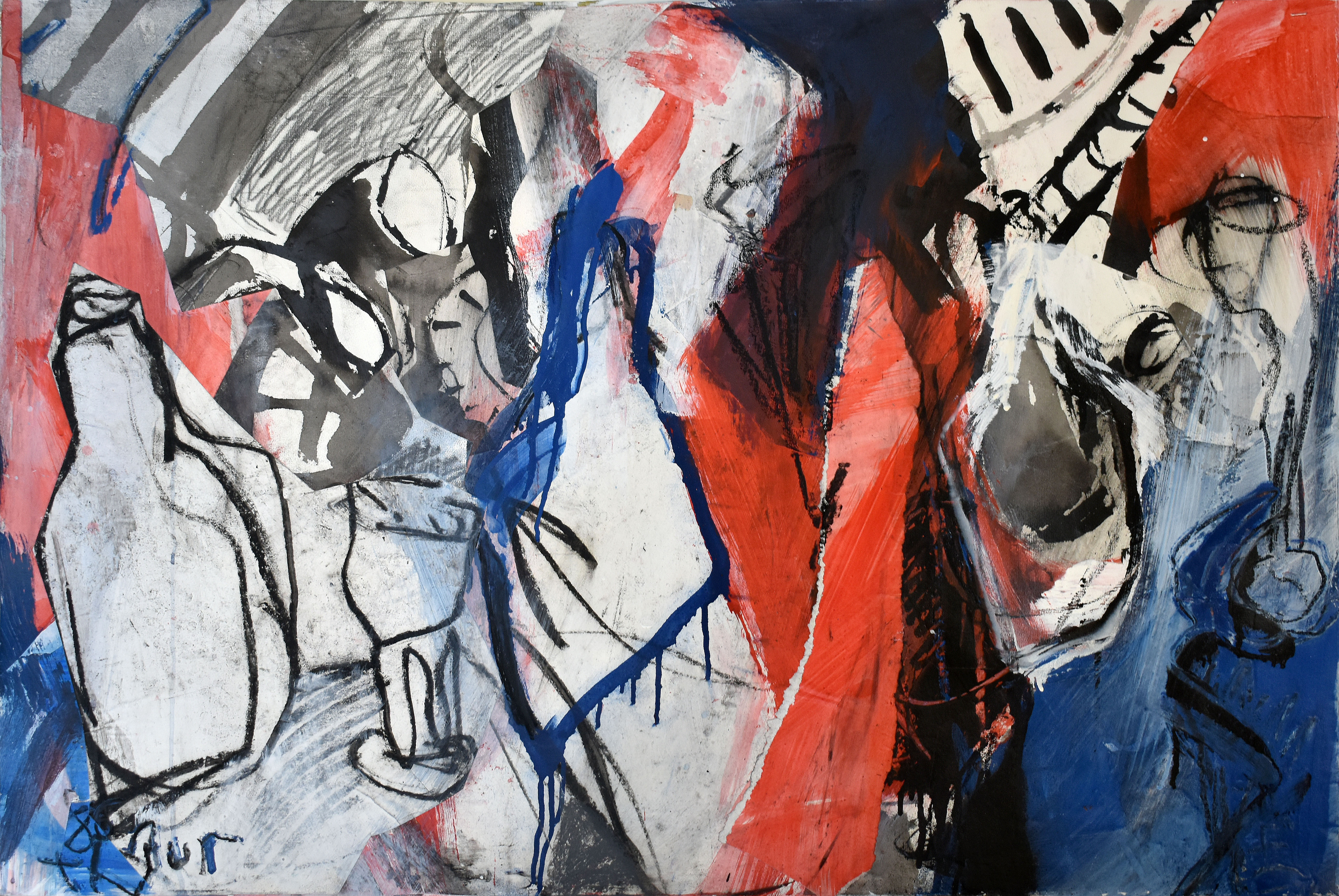 Juretzek, Tina: Abstrakte Komposition. [19]87. [Signiert, Acryl auf Karton / signed, acryl paint on cardboard]. (Tina Juretzek, geboren am 25. November 1952 in Leipzig. Deutsche Malerin. Studium an der Kunstakademie Düsseldorf bei Günter Grote).