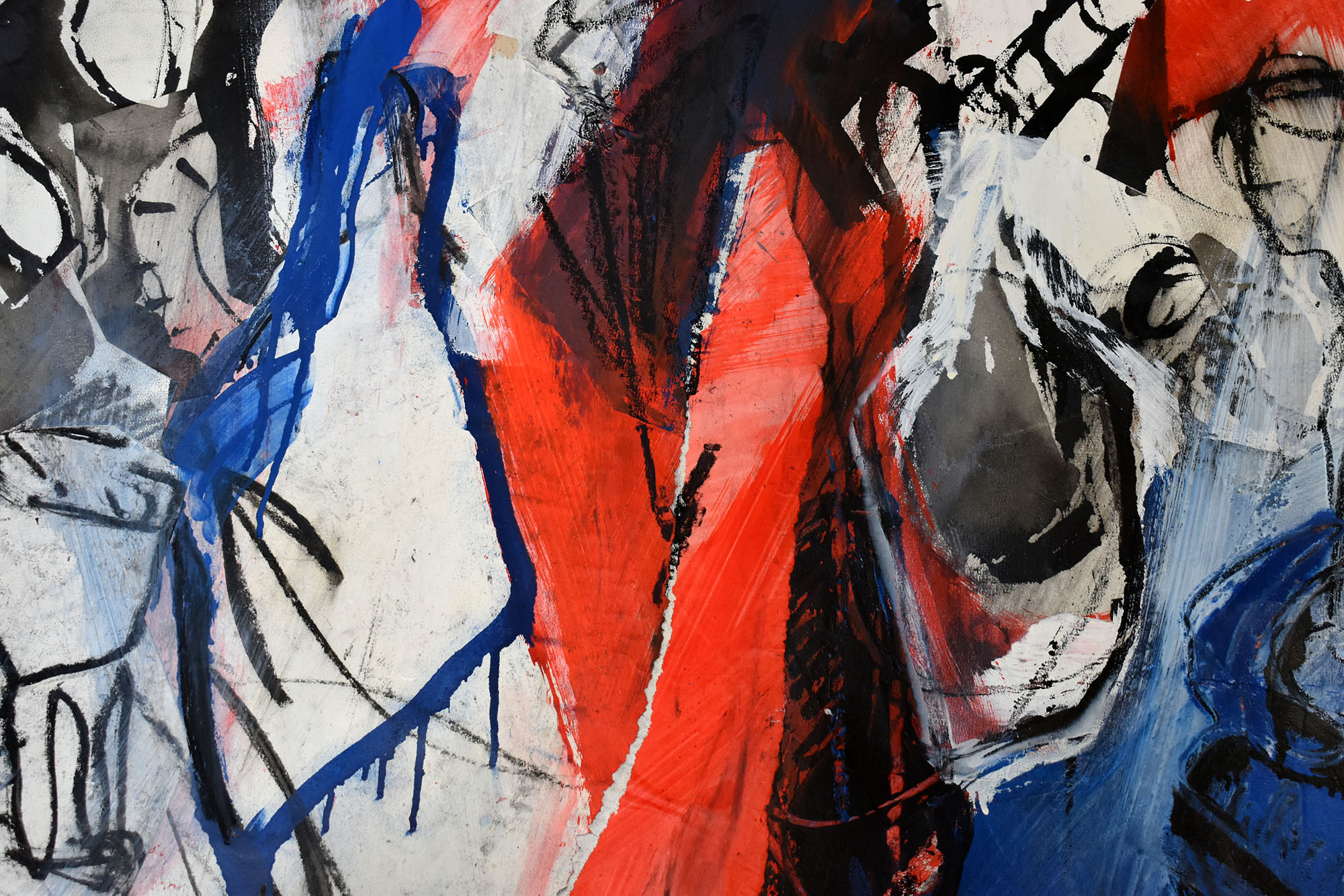 Abstract composition in acrylic on cardboard. Signed and dated (87) in black by Tina Juretzek in the image bottom left. Dimensions sheet/image: 70.0 x 100.0 cm. Provenance: From the estate of the art collector and author Ralf Seilheimer. On the back in the edge area with residues of paper tape, probably from previous mounting in the frame, otherwise very good condition.
