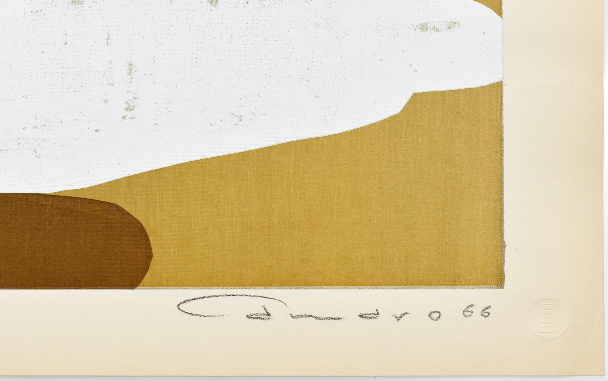 Number 67 of 75 numbered original color serigraphs on Schöller-Turm laid paper. Numbered, signed and dated (66) in lead by Alexander Camaro below the image. Sheet from the portfolio: „Wegbereiter zur moderne Kunst. 50 Jahre Kestner-Gesellschaft. Ausgewählte Grafik Portfolio B“, published by Wieland Schmied in Fackelträger-Verlag, Schmidt-Küster GmbH, Hannover 1966. Sheet dimensions: 45.0 x 65.0 cm. Image dimensions: 37.0 x 56.2 cm. Sheet slightly darkened. Overall a very good copy.