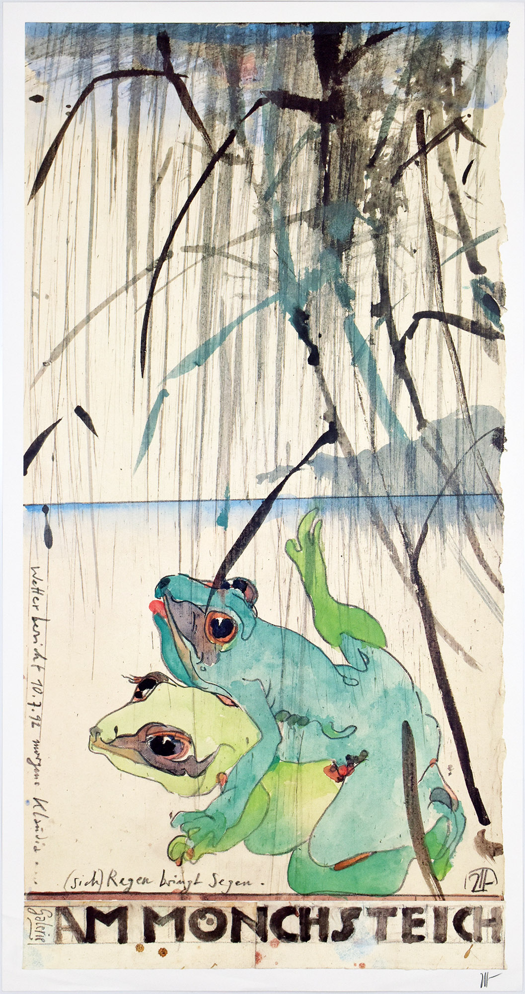 Janssen, Horst: Galerie am Mönchteich. [1992]. [Signiertes Original-Plakat / signed original poster]. (Horst Janssen, geboren am 14. November 1929 in Wandsbek bei Hamburg, gestorben am 31. August 1995 in Hamburg. Zeichner, Grafiker, Autor, Plakatkünstler, Illustrator und Fotograf, einer der herausragendsten und produktivsten Zeichner und Grafiker des 20. Jahrhunderts).