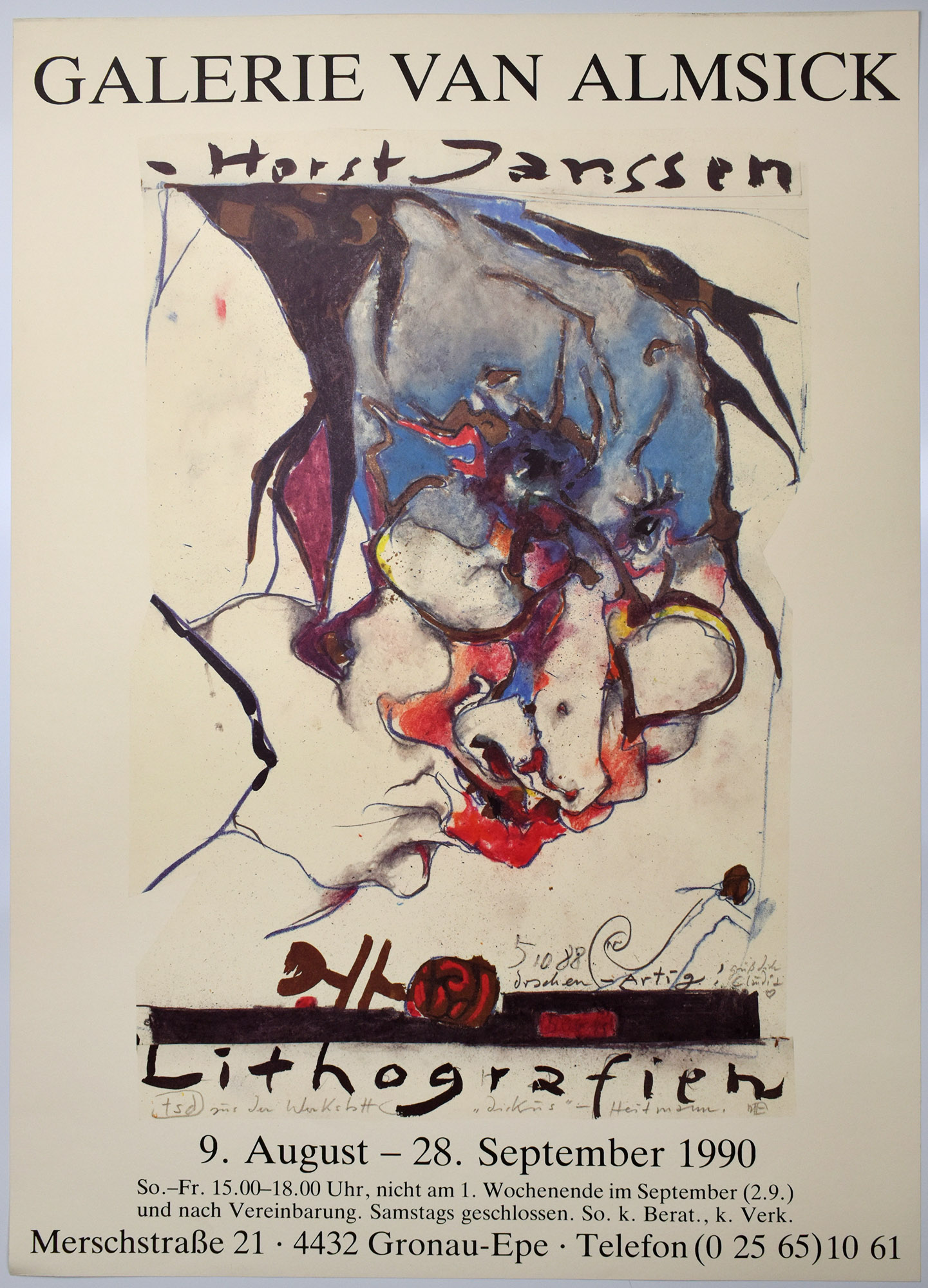 Janssen, Horst: Lithografien. [1990]. [Original-Plakat / original poster]. (Horst Janssen, geboren am 14. November 1929 in Wandsbek bei Hamburg, gestorben am 31. August 1995 in Hamburg. Zeichner, Grafiker, Autor, Plakatkünstler, Illustrator und Fotograf, einer der herausragendsten und produktivsten Zeichner und Grafiker des 20. Jahrhunderts).