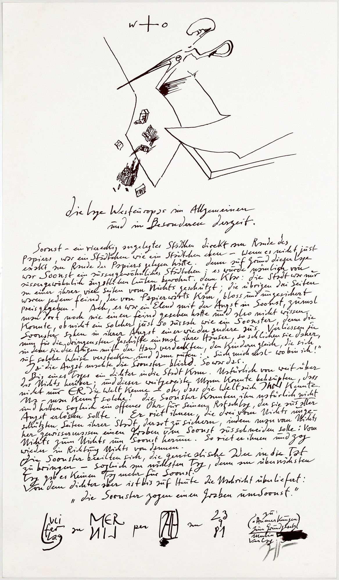 Janssen, Horst: Die Lage Westeuropas…. 23.9.81. [Original-Plakat / original poster]. (Horst Janssen, geboren am 14. November 1929 in Wandsbek bei Hamburg, gestorben am 31. August 1995 in Hamburg. Zeichner, Grafiker, Autor, Plakatkünstler, Illustrator und Fotograf, einer der herausragendsten und produktivsten Zeichner und Grafiker des 20. Jahrhunderts).