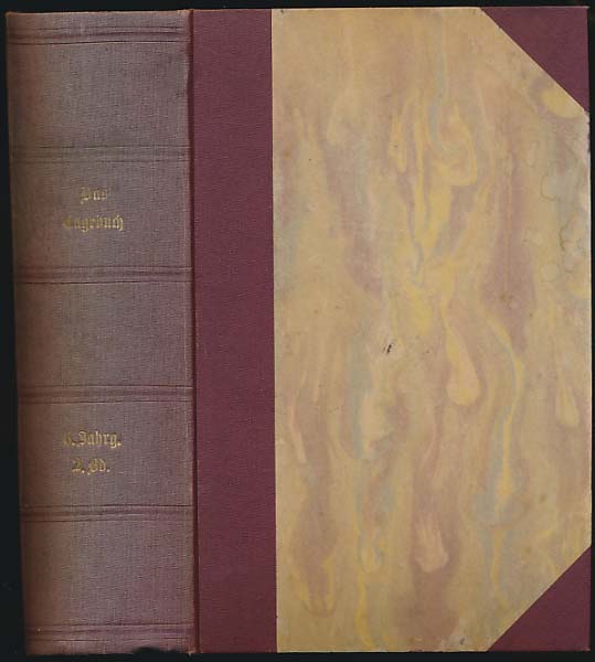 Großmann, Stefan; Schwarzschild, Leopold [Hrsg.]: Das Tage-Buch. 6. Jahrgang / 2. Halbjahr. Juli – Dezember 1925, Heft 27-52. Berlin, Tagebuchverlag, 1925. 8°. 22 cm. Seiten 965-1949. Privater Halbleinenband der Zeit mit marmoriertem Bezugspapier, gebunden. Mit goldgeprägtem Rückentitel.