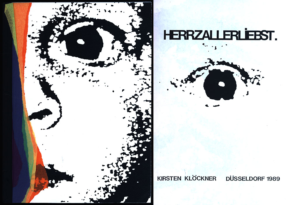 Klöckner, Kirsten: Herrzallerliebst. Düsseldorf, Selbstverlag, 1989. 4°. 28 x 21 cm. Unpaginiert. Ungebunden. Blätter in Klemmschiene.