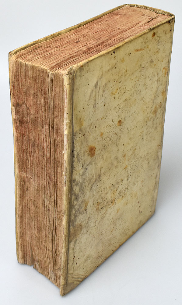 Erste Ausgabe der Zwinger-Bearbeitung. Nissen (Botanik) 1311. Mit über 1200 botanischen Textholzschnitten. Es handelt sich um die erste durch Zwinger umfassend bearbeitete und erweiterte Ausgabe des ursprünglich durch Pier Andrea Mattioli (1500-1577) verfassten Werkes. Das lateinische Original wurde erstmals 1554 von Valgrisi gedruckt und publiziert, bei dem auch 1563 dessen erste deutsche Bearbeitung durch Georg Handsch (1529-1578) erschien (″New Kräuterbuch“). Gegenüber den darauf folgenden Bearbeitungen durch Joachim Camerarius (1534-1598) und Bernhard Verzascha (1628-1680), auf denen die vorliegende Ausgabe beruht, fällt die Bearbeitung durch den Arzt und Botaniker Theodor Zwinger (1658-1724) noch einmal deutlich umfassender und umfangreicher aus. Das „Theatrum Botanicum“ besteht aus fünf Büchern, wobei das erste den Baum- und Staudengewächsen gewidmet ist, die vier weiteren dem gesamten Spektrum der Kräuter, mit besonderem Augenmerk für deren medizinischen und alltagsgebräuchlichen Nutzen. Unter anderem findet sich in dem Werk ein illustrierter Beitrag zum „Arabische[n] Bohnenbaum, auß dessen Frucht man das Tranck Coffée macht“. Entsprechend der Ausgabe von Camerarius wurden einige Illustrationen aus dem Nachlass Conrad Gessners benutzt, die übrigen Holzschnitte sind den Figuren der Valgrisi-Ausgabe nachgeschnitten. Einband etwas berieben und fleckig, Ecken leicht bestoßen, Pergament am oberen Kapital mit kleiner Fehlstelle und etwas eingerissen, Kupferstichportrait und Frontispiz fehlend, das Titelblatt und das erste Blatt lediglich in Kopie (auf schönem Papier) vorhanden und an entsprechender Stelle beigebunden, vereinzelt springende Paginierung (Text jedoch fortlaufend und vollständig), Stempel auf Vorsätzen und Titelblatt, die ersten und letzten Seiten mit leichten, zum Teil mit Papier hinterlegten Randläsuren bzw. kleineren Wurmlöchern in den Stegen, einzelne weitere Seiten mit kleinen Wurmlöchern in den Stegen, zahlreiche Seiten mit leicht nachgebräunten Wasserflecken in den Stegen (im Regelfall ohne Textberührung), äußere Ecke des Kopfstegs der Seiten 767-772 stärker betroffen mit deutlich gedunkeltem Wasserrand (leicht Textberührung, eine Seite mit Eckfehlstelle ohne Textverlust), Seiten stellenweise blass stockfleckig, vereinzelt Seiten in den Ecken knickspurig, ansonsten gutes Exemplar. Vellum binding of the times. First printing of the Zwinger edition. With more than 1200 botanical woodcuts within the text. First edition by Theodor Zwinger (1658-1724), immensely enlarged and with special focus on everyday use and medical value of herbal plants. Binding a bit rubbed and stained, corners lightly bumped, vellum of the spine with light blemishes, engraved portrait and frontispiece missing, title page and first sheet only as copies (on nice paper) at hand and bound in respective area, very few errors in pagination (text complete and consecutive though), stamps on endpapers and title page, first and last pages with light blemishes to the margins (partly backed with paper) respectively with small wormholes, few further pages with small wormholes to the margins, many pages with slightly darkened waterstains to the margins (in general without affecting the text), corners of pages 767-772 with darker water stain as well as defect to one corner, pages partially with faint foxing, very few pages with light crease marks, otherwise good copy.