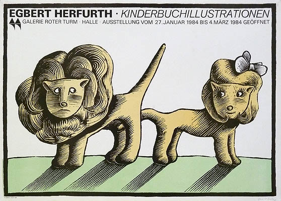 Herfurth, Egbert: Plakat / poster: Egbert Herfurth. Kinderbuchillustrationen. Galerie Roter Turm. Halle. Ausstellung vom 27. Januar bis 4. März 1984 geöffnet. Egbert Herfurth geboren 1944 in Wiese. Deutscher Grafiker und Maler, zahlreiche Buchillustrationen und Plakatgestaltungen.