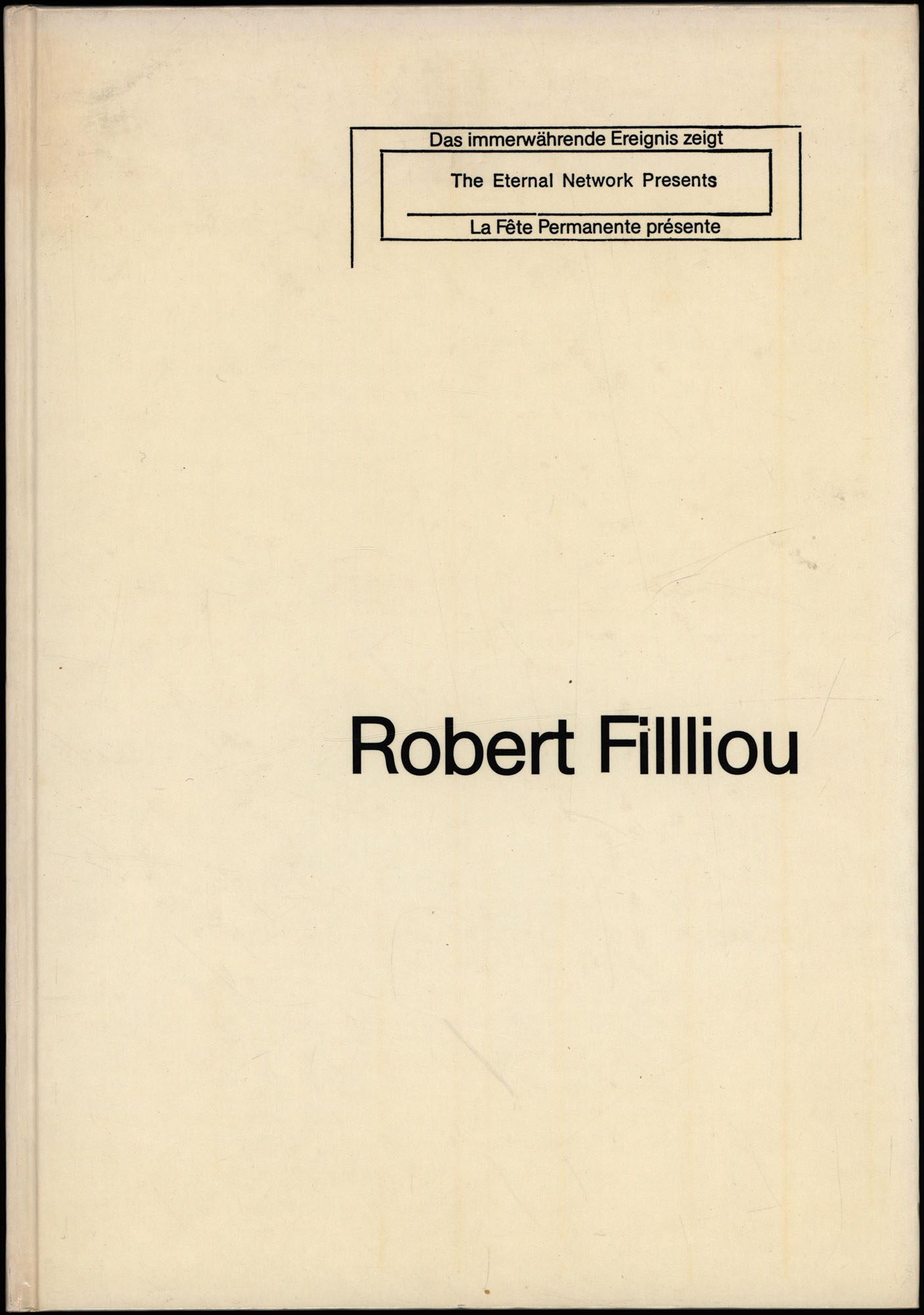 Fillliou, Robert – Erlhoff, Michael (Hrsg.): Das immerwährende Ereignis zeigt, the eternal network presents, la fête permanente présente Robert Filliou. Sprengel-Museum Hannover, 13.7. – 2.9.1984. Musée d’Art Moderne de la Ville de Paris, octobre – novembre 1984. Kunsthalle Bern, 18.1. – 17.2.1985. Hannover, Selbstverlag, 1984. 4°. 30,5 x 21,5 cm. 208 Seiten. Original-Pappband.