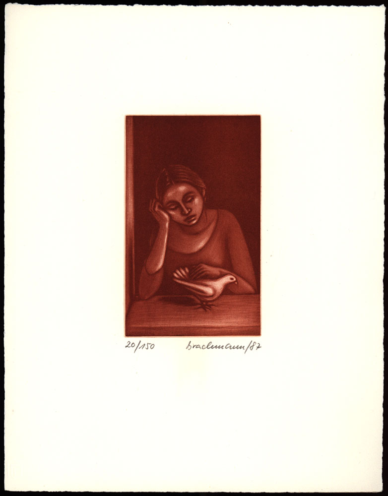 Nummer 20 von 150 nummerierten Exemplaren der Vorzugsausgabe mit zwei nummerierten, datierten und signierten Farbradierungen von Monika Brachmann. Maße: 26,0 x 20,5 cm. Verso Titelblatt 3-zeilige, signierte Widmung von Brachmann, beiliegend Postkarte mit 6-zeiligem signierten Dankesgruß von Brachmann. Mit zahlreichen Illustrationen. Sehr gutes Exemplar.