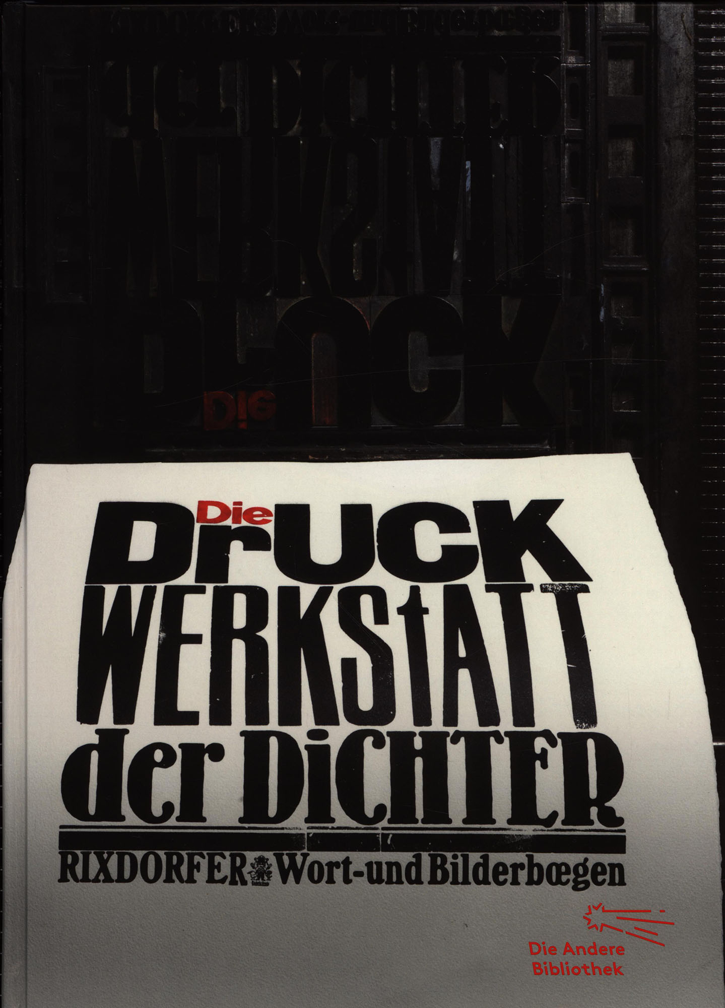 Döring, Christian [Hrsg.]: Die Druckwerkstatt der Dichter. Rixdorfer Wort- und Bilderboegen. Berlin, Verlag AB – Die Andere Bibliothek, 2013. 4°. 32 x 22,5 cm. 447 Seiten. Original-Pappband. (Die Andere Bibliothek).
