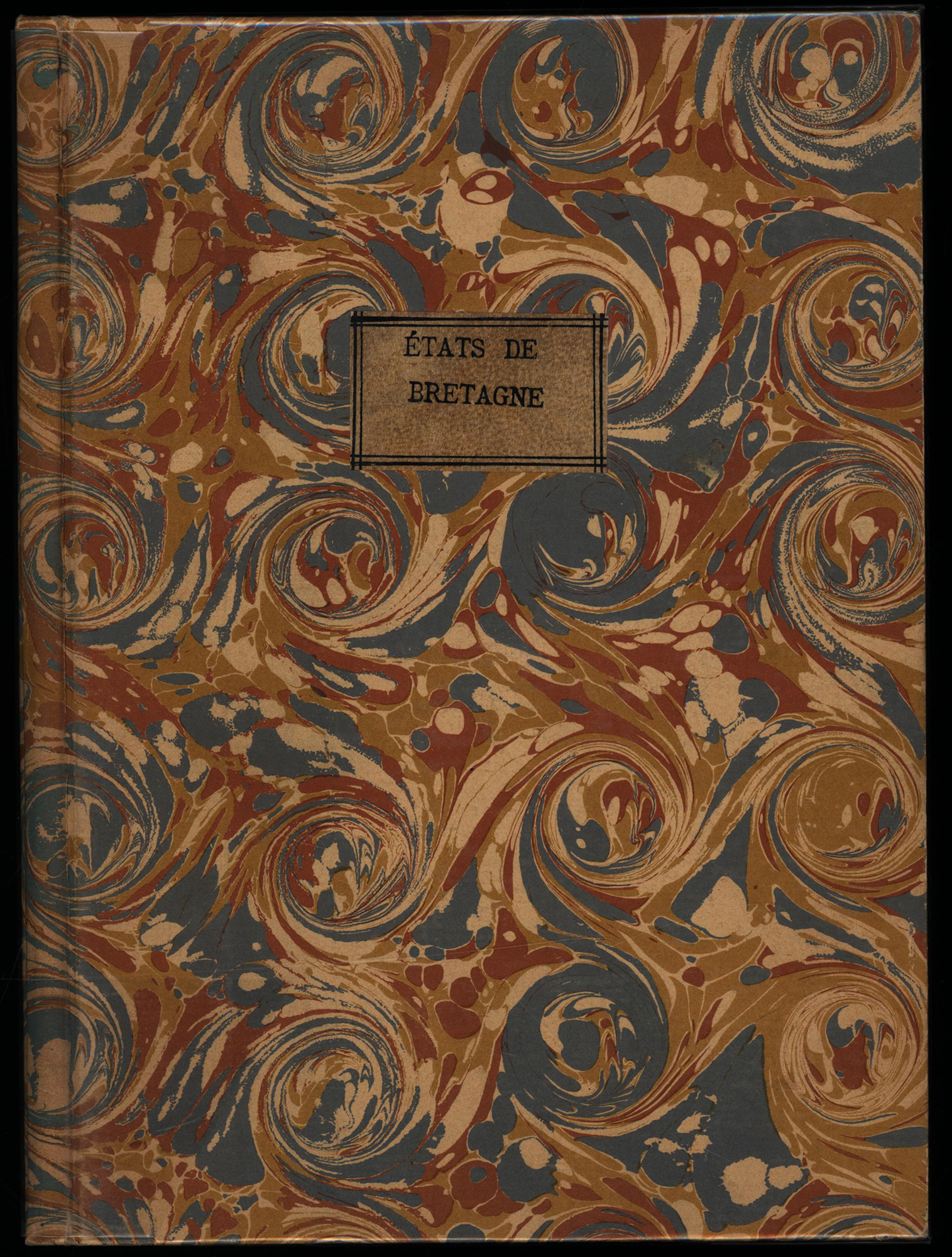 Reponse des états de Bretagne au mémoire du duc d’Aiguillon. Rennes, Imprimeur Vatar, 1770. Groß-8°. 24 x 17 cm. 64, [1] Seiten. Späterer Pappband im Stile der Zeit mit Bezug aus gedrucktem Marmorpapier und aufmontiertem Titelschild der Zeit.