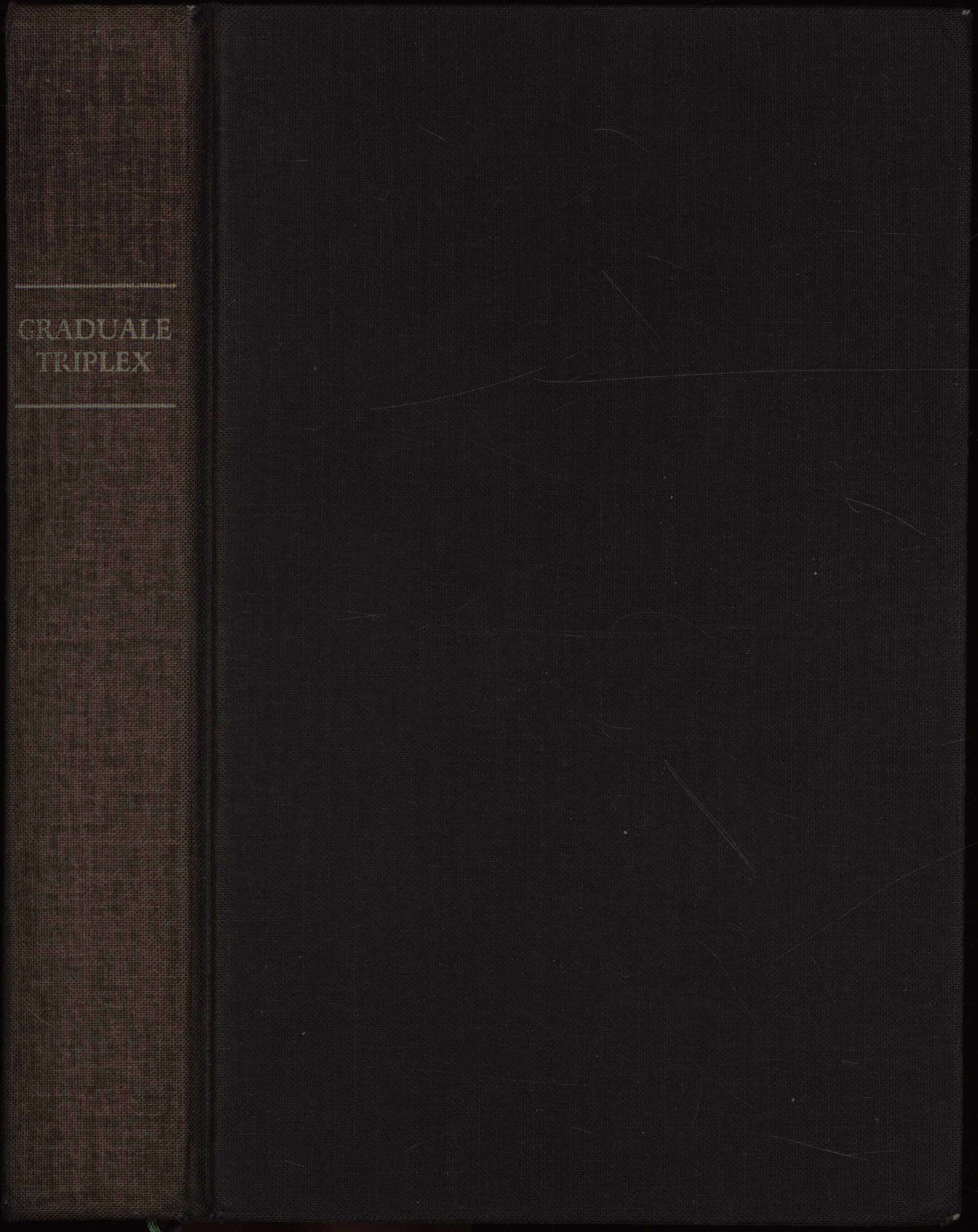 Billecocq, Marie-Claire; Fischer, Rupert [Hrsg.]: Graduale Triplex seu. Graduale Romanum Paul PP.VI cura recognitium & rhythmicis signis a solesmensibus monachis ornatum, neumis laudunensibus et sangallensibus nunc auctum. Sablé sur Sarthe, Abbaye St.Pierre de Solesmes, 1979. 8°. 21 x 14 cm. 918 Seiten. Original-Leinenband mit goldgeprägtem Rückentitel und Rundum-Farbschnitt. Dünndruck.