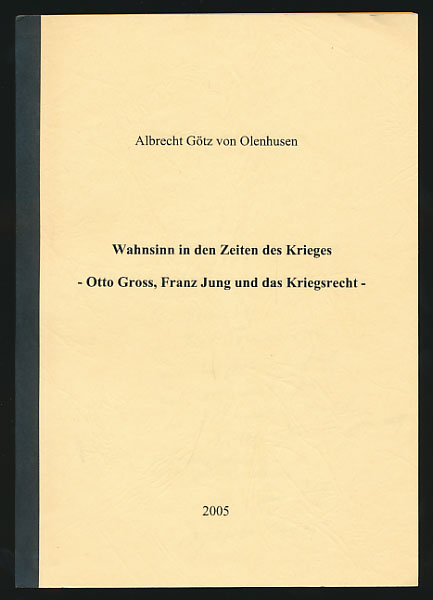 Götz von Olenhusen, Albrecht: Wahnsinn in den Zeiten des Krieges. Otto Gross, Franz Jung und das Kriegsrecht. Luxembourg, Luxemburg Aaarhouse, 2005. 8°. 21 cm. Seiten 82-128. Original-Broschur.