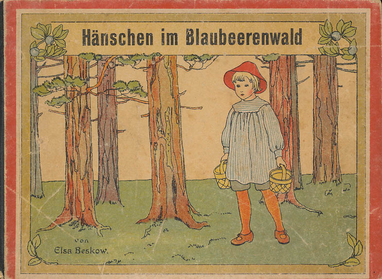 Beskow, Elsa; Brandt, Karsten: Hänschen im Blaubeerenwald. Ohne Ort, Ohne Verlag, ca. 1925. Quer-8°. 16 x 21 cm. 9 Blatt starker Karton mit 17 Seiten Abbildungen. Original-Halbleinenband. (= No. 551).