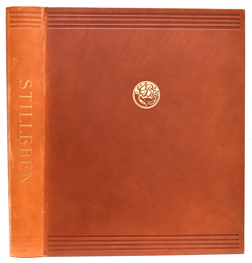 Bergström, Ingvar; Grimm, Claus; Rosci, Marco: Stilleben. Die grosse Zeit des europäischen Stillebens. Texte Ingvar Bergström, Claus Grimm, Marco Rosci, Michel und Fabrice Fare, Juan Antonio Gaya Nuno. [Vorzugsausgabe]. Stuttgart, Zürich, Belser Verlag, 1979. Folio. 42 cm. 243 Seiten, LX Blatt. Brauner Ganzlederband mit goldgeprägtem Rückentitel im leinenbezogenem Originalschuber mit Lederapplikationen.