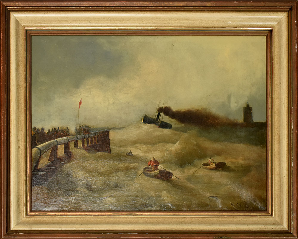 Achenbach-Schule: Schwere See vor der belgischen Küste. [18]48. [Öl auf Leinwand, gerahmt / oil on canvas, framed].