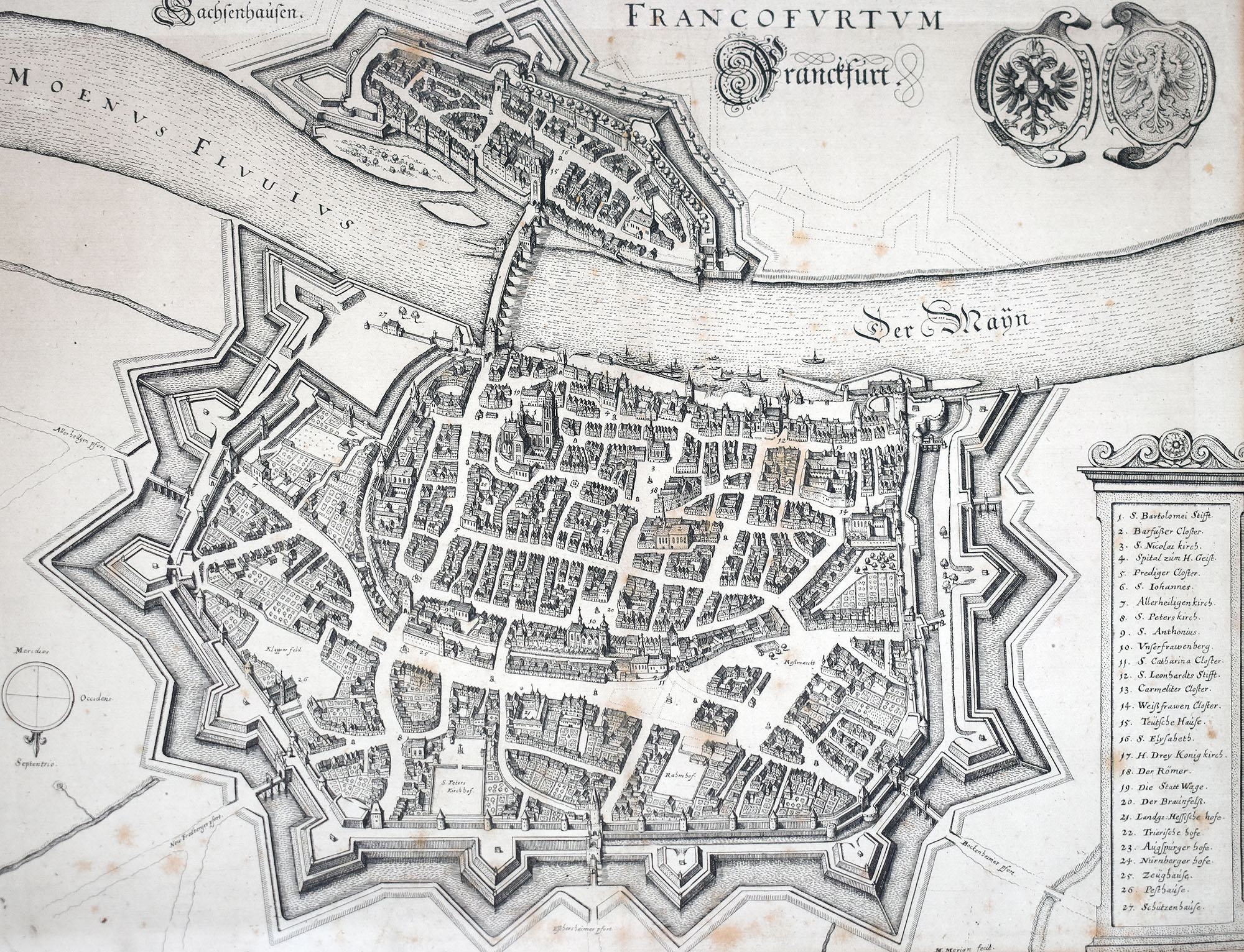 Merian, Francofurtum. Franckfurt. [1640]. Original-Kupferstich, gerahmt.