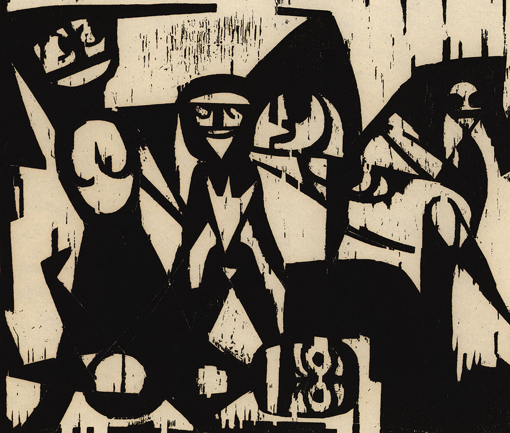 Berke, Hubert: Tragödie. [1947]. [Signierter Original-Holzschnitt / signed original woodcut]. (Hubert Berke, geboren 1908 im westfälischen Buer, gestorben 1979 in Köln-Rodenkirchen. Studium in Königsberg bei Wilhelm Worringer und Fritz Burmann. Er gehörte ab 1932 (bis 1933) neben Petra Petitpierre, Erwin Weiers, Eugen Batz, August Preuße, Georg Jakob Best und Emil Bert Hartwig zu den letzten Meisterschülern von Paul Klee an der Düsseldorfer Kunstakademie, 1934 setzte er kurzzeitig seine Studien bei dem Expressionisten Heinrich Nauen fort).