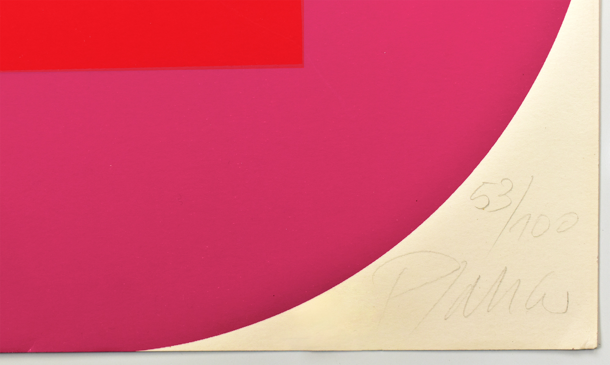 Nummer 53 von 100 nummerierten Original-Siebdrucken auf Büttenkarton. Unterhalb der Abbildung im rechten Eckbereich von Karl Georg Pfahler in Blei signiert. Maße Abbildung/Blatt: 60,0 x 60,0 cm. Sehr guter Zustand.