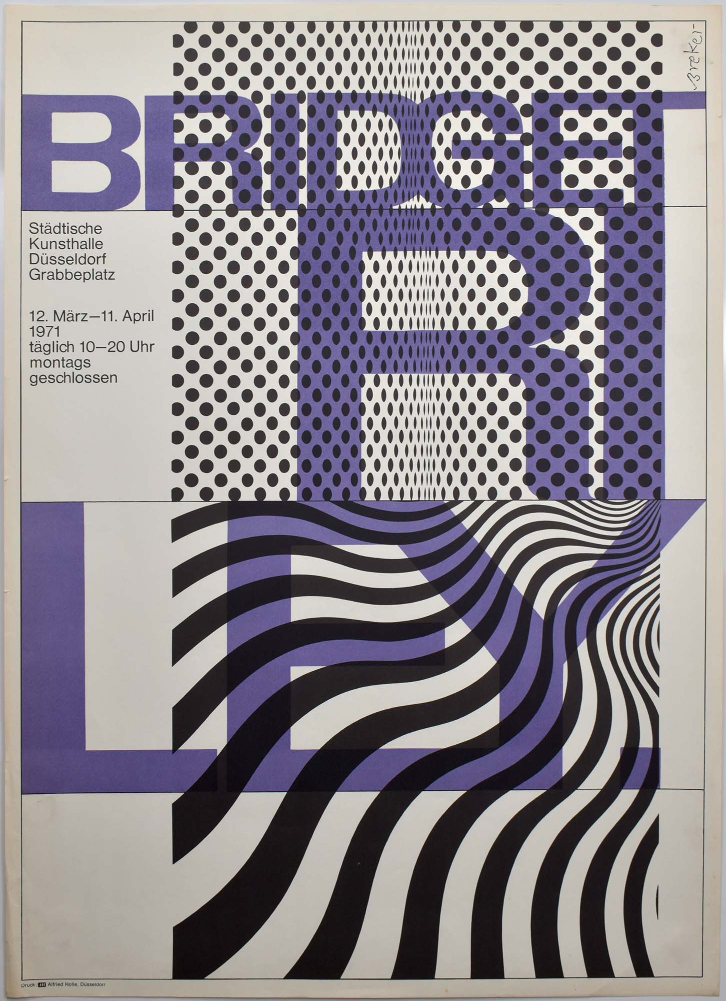 Riley, Bridget: Ausstellung 1971. [Original-Plakat / original poster]. (Bridget Louise Riley, geboren am 24. April 1931 in West Norwood, London. Britische Malerin, eine der führenden Vertreterinnen der Op-Art).