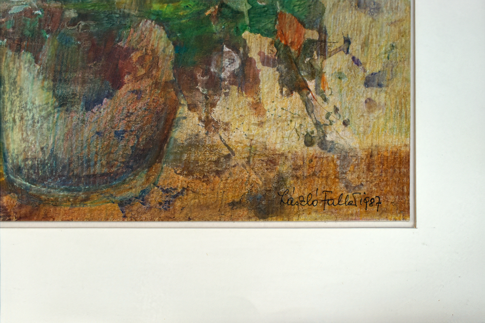 Gouache on cardboard. Signed and dated (1987) in black by Laszlo Faller within the image lower right. Mounted behind glass in a simple wooden frame. Not examined out of frame. Provenance: From the Wilhelm Blasberg Collection. Frame dimensions: 44.0 x 53.5 cm. Sheet/image dimensions: 28.5 x 38.5 cm. Very good condition.