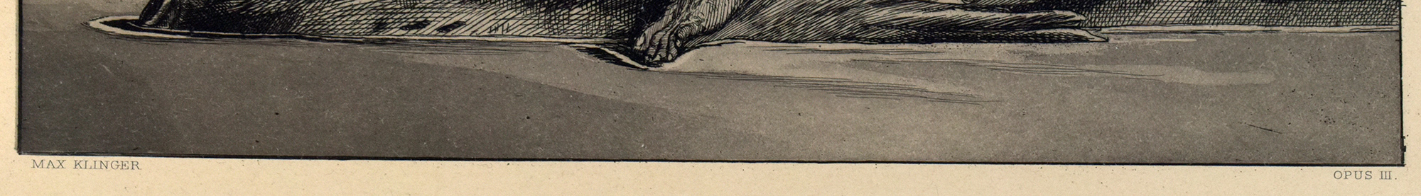 Klinger, Max: Zweite Zukunft. [1898]. [Original-Radierung, gerahmt / original etching, framed] (Max Klinger, geboren am 18. Februar 1857 in Leipzig, gestorben am 4. Juli 1920 in Großjena. Deutscher Bildhauer, Maler und Grafiker und auch Medailleur, des Symbolismus).