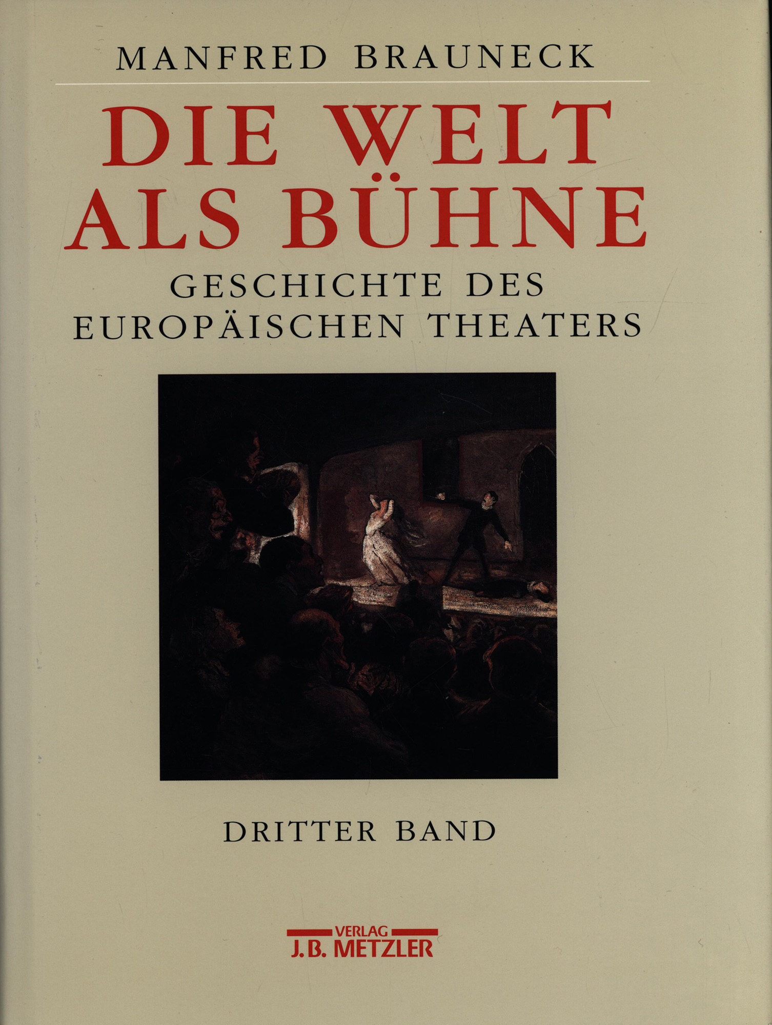 Brauneck, Manfred: Die Welt als Bühne. Geschichte des europäischen Theaters. Dritter Band. Stuttgart und Weimar, Verlag J. B. Metzler, 1999. 4°. 29 x 22,5 cm. XVIII, 965 Seiten. Original-Leinenband mit Lesebändchen und Original-Schutzumschlag.