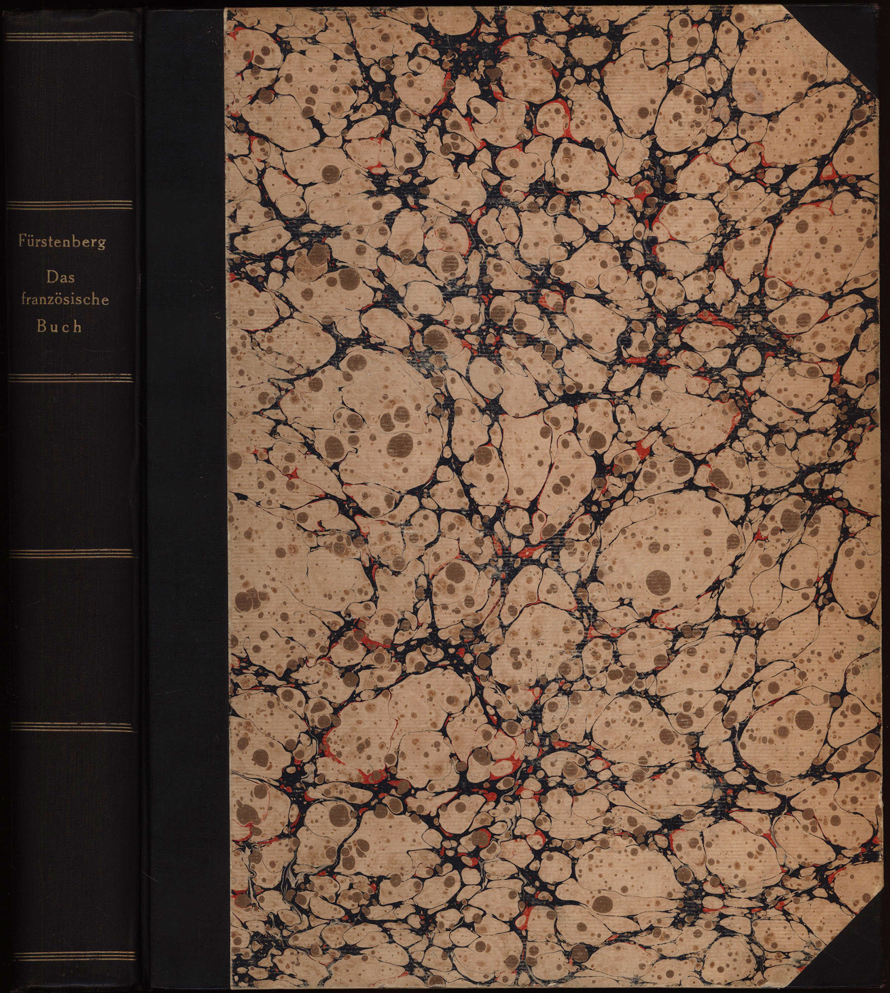Fürstenberg, Hans: Das französische Buch im achtzehnten Jahrhundert und in der Empirezeit. Weimar, Verlag der Gesellschaft der Bibliophilen, 1929. 4°. 30 x 19,5 cm. VIII, 431 Seiten. Bibliophiler Halbleinenband mit goldgeprägtem Rückentitel auf Lederschildchen und marmoriertem Deckelbezug. (= Jahresgabe der Gesellschaft der Bibliophilen 1929. Band 1).