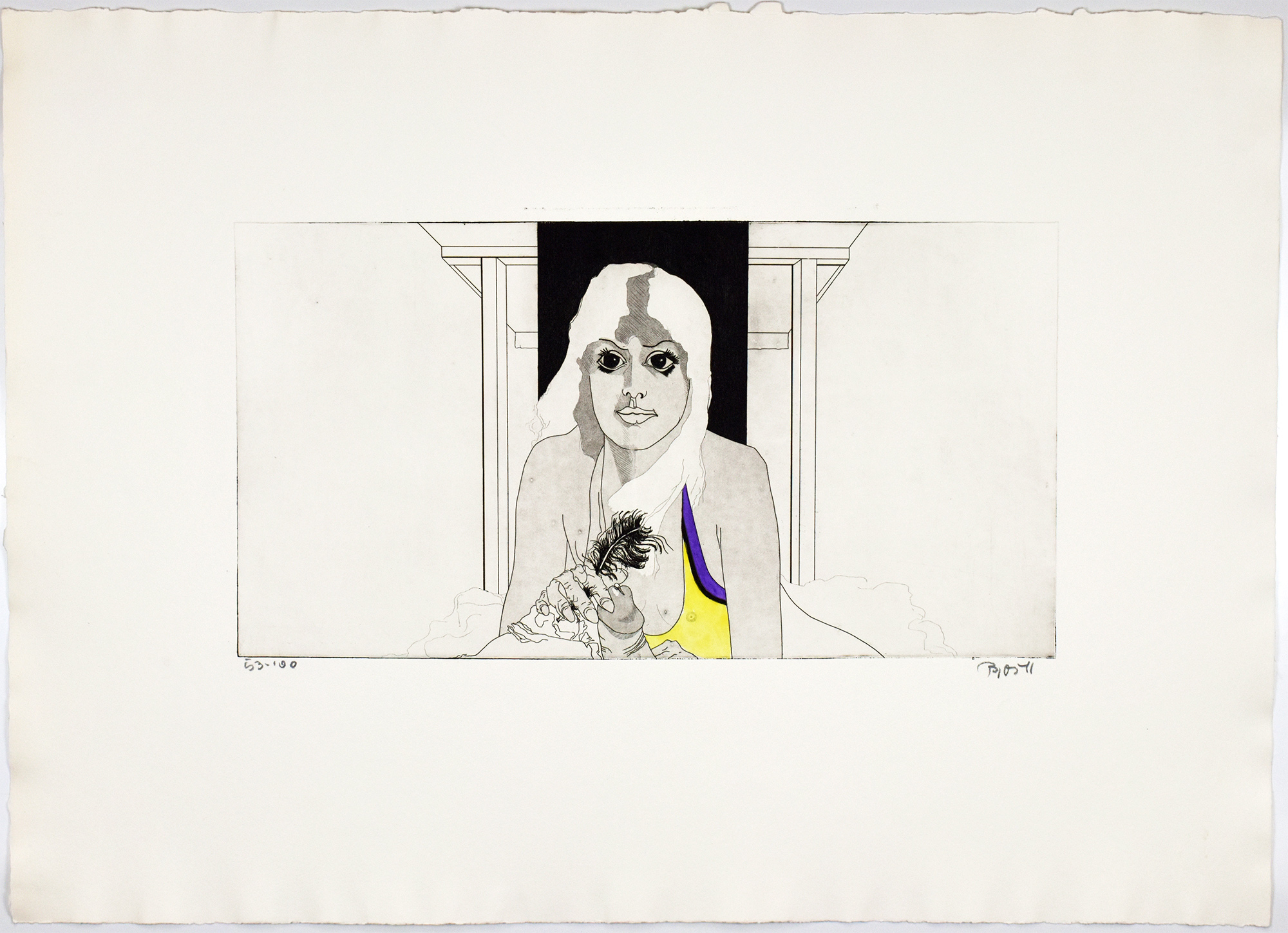 Bianga, Erotische Szene. [19]71. [Signierte Original-Radierung, handkoloriert].