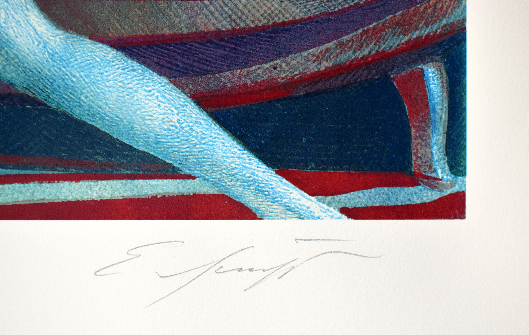 Nummer 71 von 450 nummerierten Original-Farblithografien auf dickerem Büttenpapier. Unterhalb der Abbildung von Ernst Fuchs in Blei signiert. Rückseitig minimale Spuren aus ehemaliger Montage im Rahmen. Maße Blatt: 59,5 x 84 cm. Maße Abbildung: 36,3 x 64,0 cm. Sehr guter Zustand.