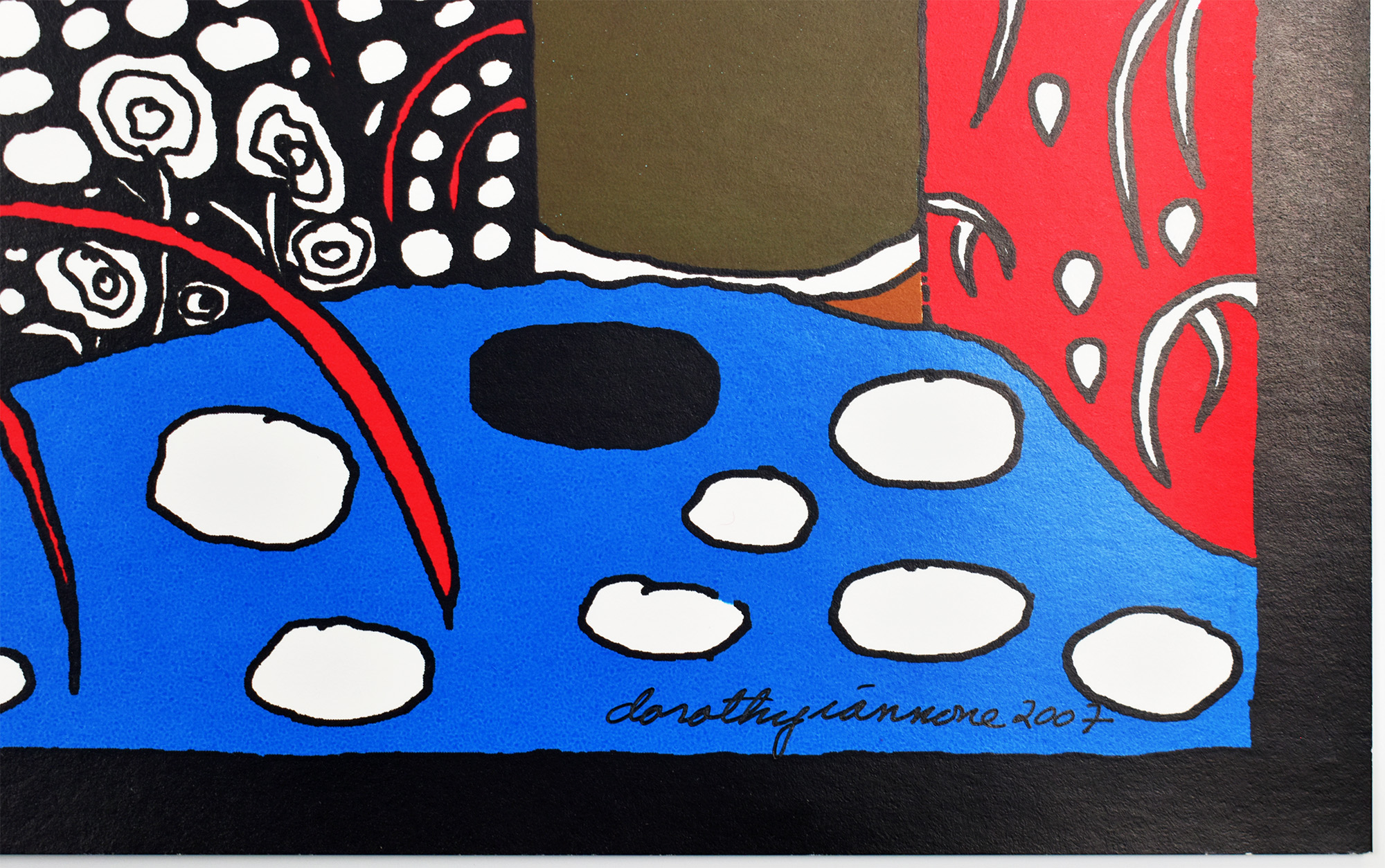 Original-Farbsiebdruck, elffarbig. Innerhalb der Abbildung unten rechts von Dorothy Iannone in Schwarz signiert und datiert (2007). Edition der Griffelkunst-Vereinigung Hamburg, 2007. Griffelkunst, Verzeichnis der Editionen E 435. Maße Blatt/Abbildung: 53,5 x 63,5. Sehr gutes, tadelloses Exemplar.
