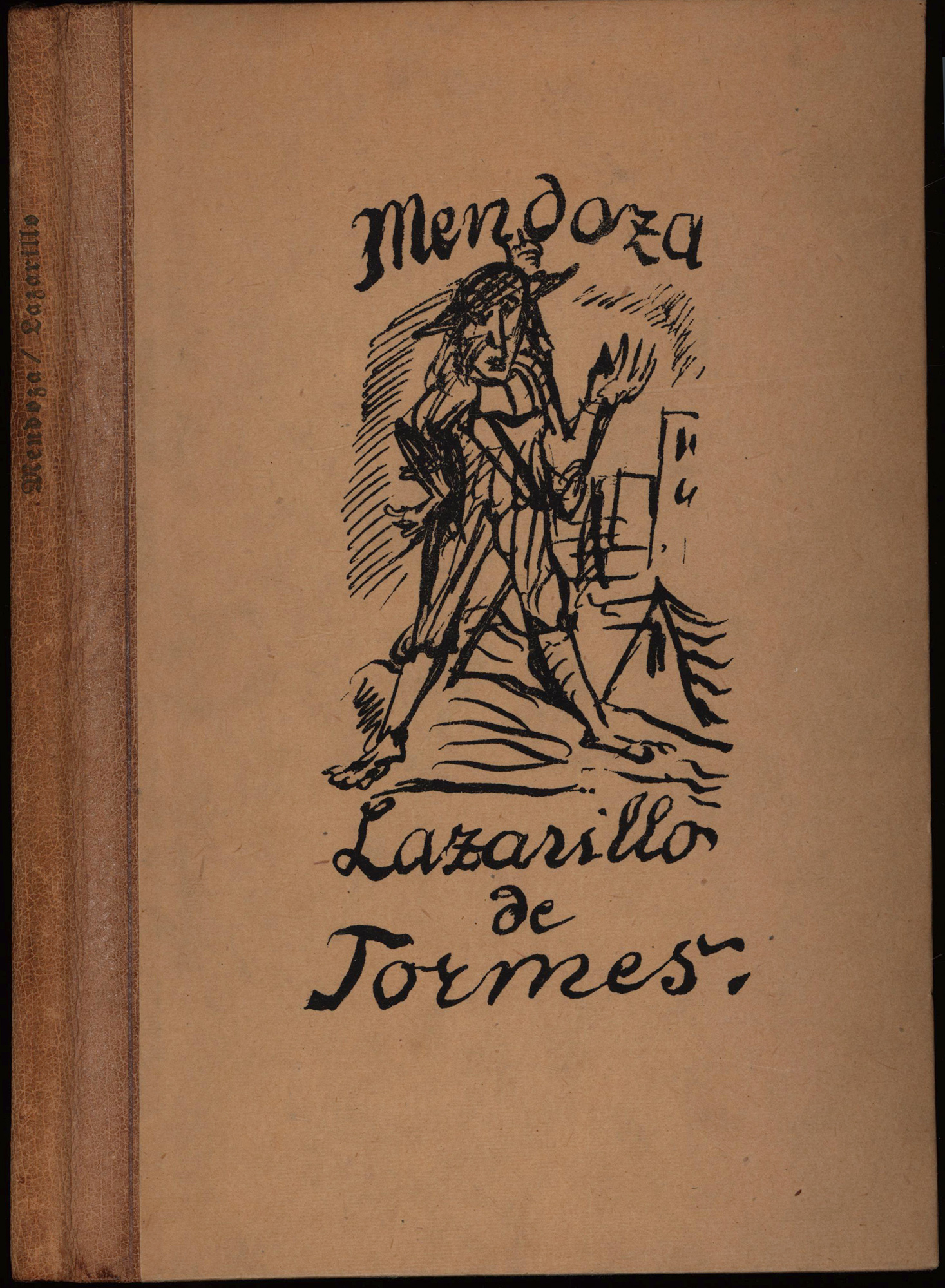 Hurtado de Mendoza, Diego; Kleinschmidt, Paul [Ill.]: Die Abenteuer des Lazarillo von Tormes. Mit Steinzeichnungen von Paul Kleinschmidt. Berlin, Hans Heinrich Tillgner Verlag, 1923. 4°. 25,5 x 18 cm. 67 (1) Seiten. Original-Halblederband mit braunem Kopffarbschnitt. (= Das Prisma, Band 6).