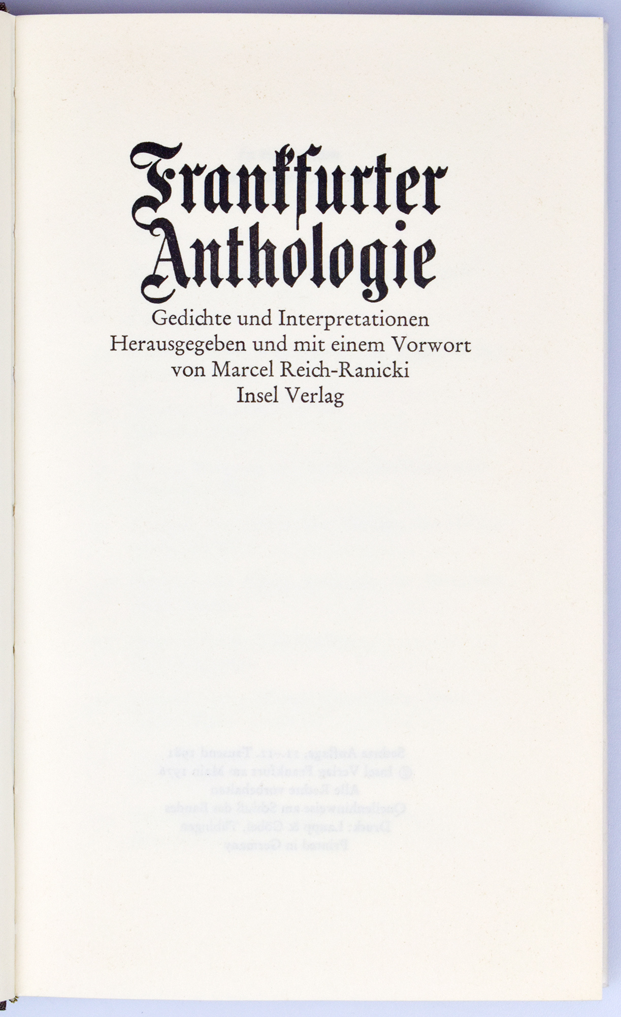 Reich-Ranicki, Frankfurter Anthologie. Band 1-27 (+ 31).