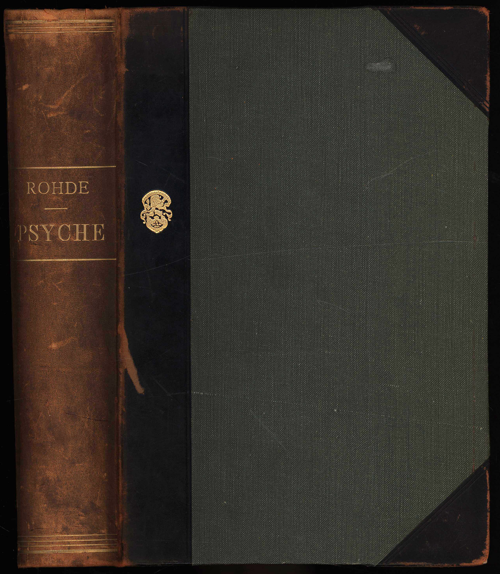 Rohde, Erwin: Psyche. Seelencult und Unsterblichkeitsglaube der Griechen. 2 Bände in 1 Band (komplett). Tübingen, Mohr, 1907. Groß-8°. 24 x 17 cm. XIV, 329, III, 448 Seiten Original-Halblederband mit goldgeprägtem Rückentitel und Rundum-Farbschnitt.