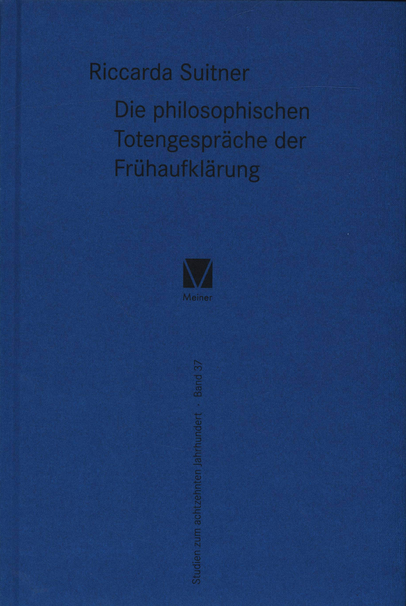Suitner, Riccarda: Die philosophischen Totengespräche der Frühaufklärung. Hamburg, Felix Meiner Verlag, 2016. Groß-8°. 24 x 16 cm. 32, 276 Seiten. Gebundener Original-Pappband. (= Studien zum achtzehnten Jahrhundert. Band 37).